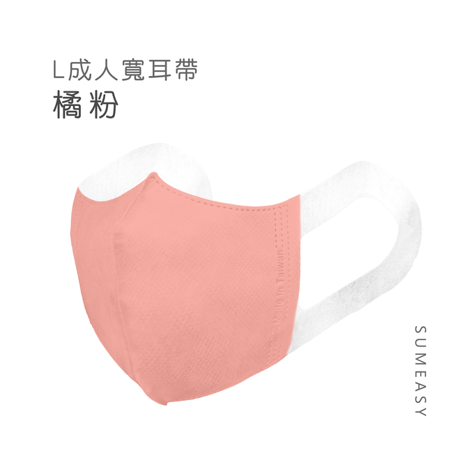 成人3D立體醫用口罩-彈性寬耳帶-橘粉色50入 (成人約13cm x 17.5cm ± 5%)