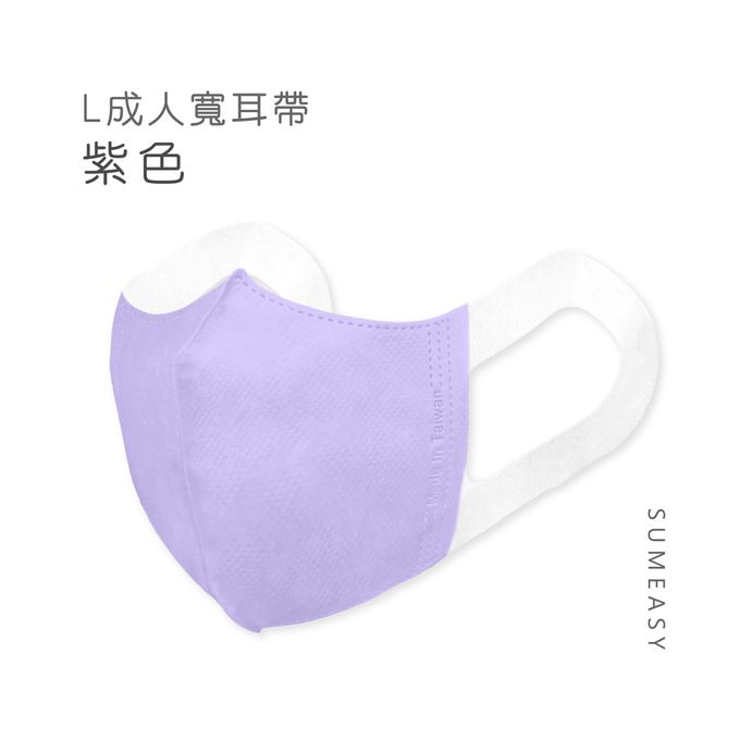 成人3D立體醫用口罩-L款-彈性寬耳帶-紫色50入 (成人約13cm x 17.5cm ± 5%)