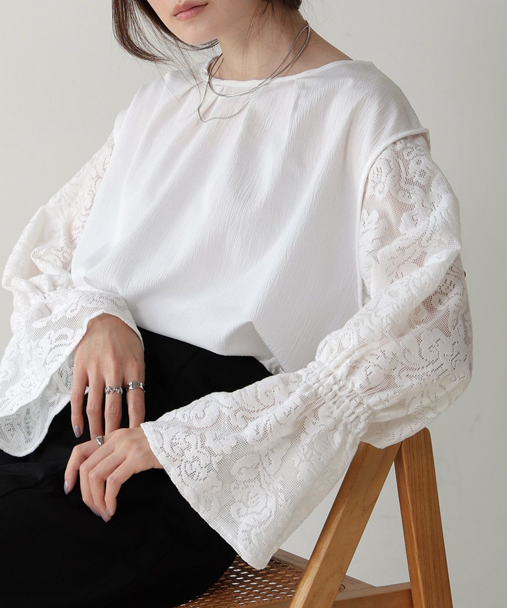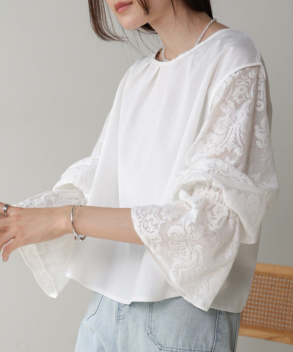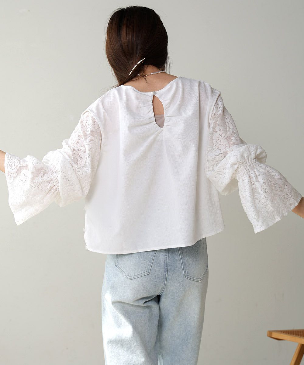 歐風質感蕾絲糖果寬袖上衣