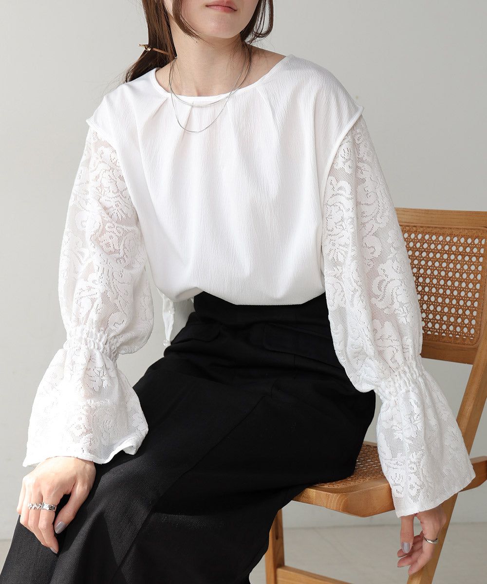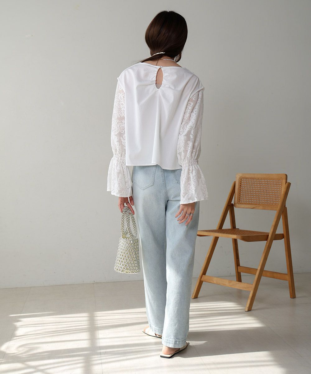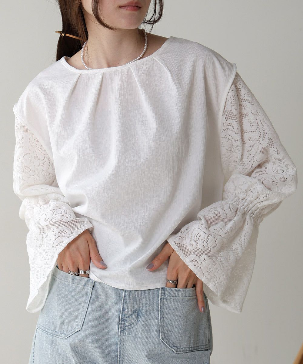 歐風質感蕾絲糖果寬袖上衣