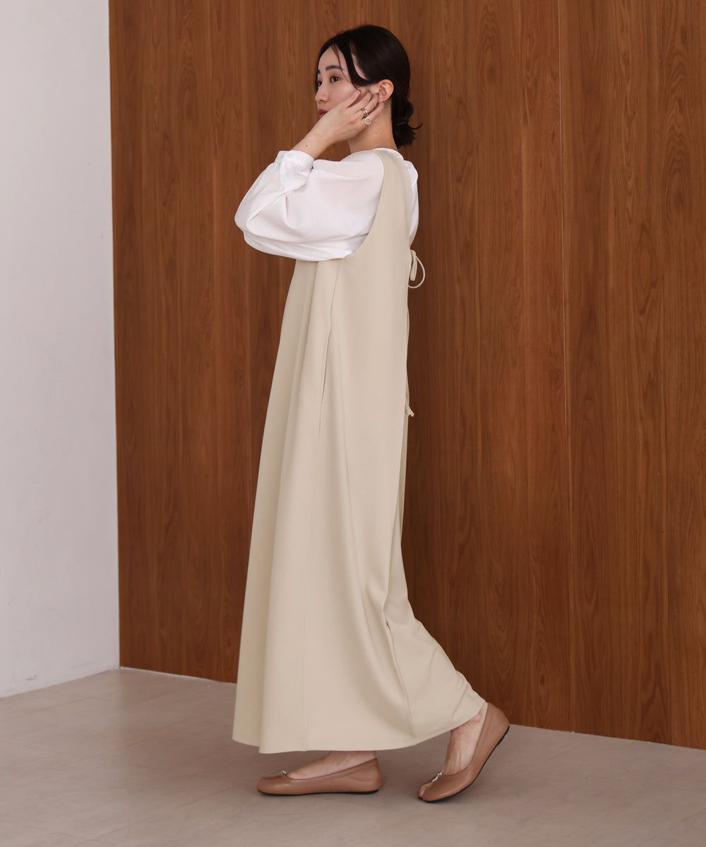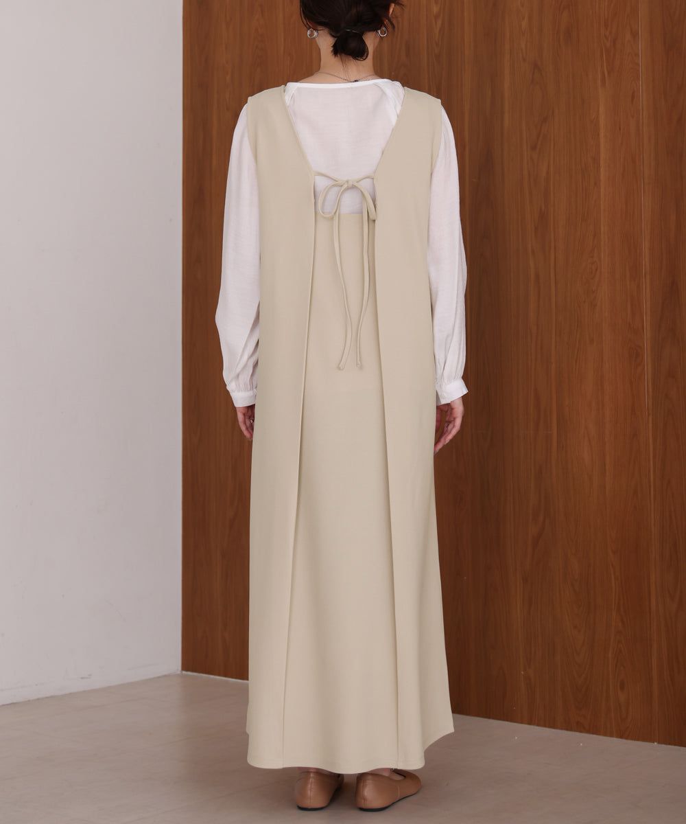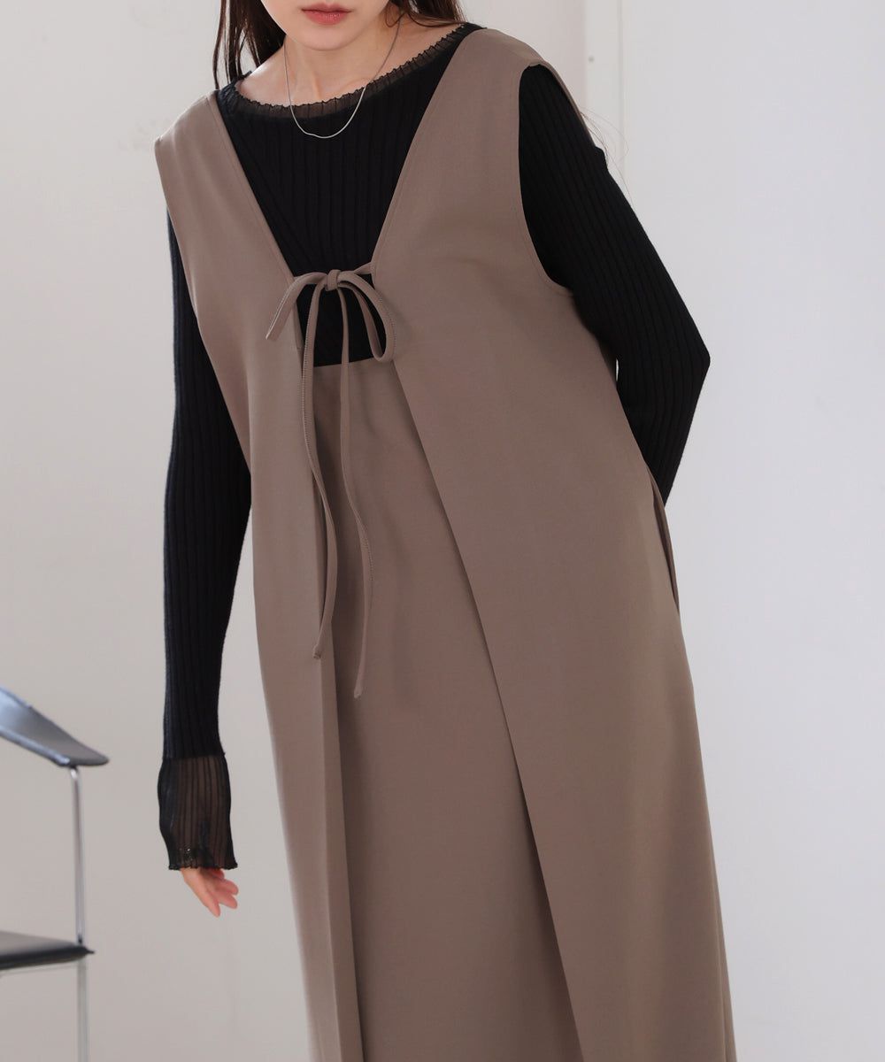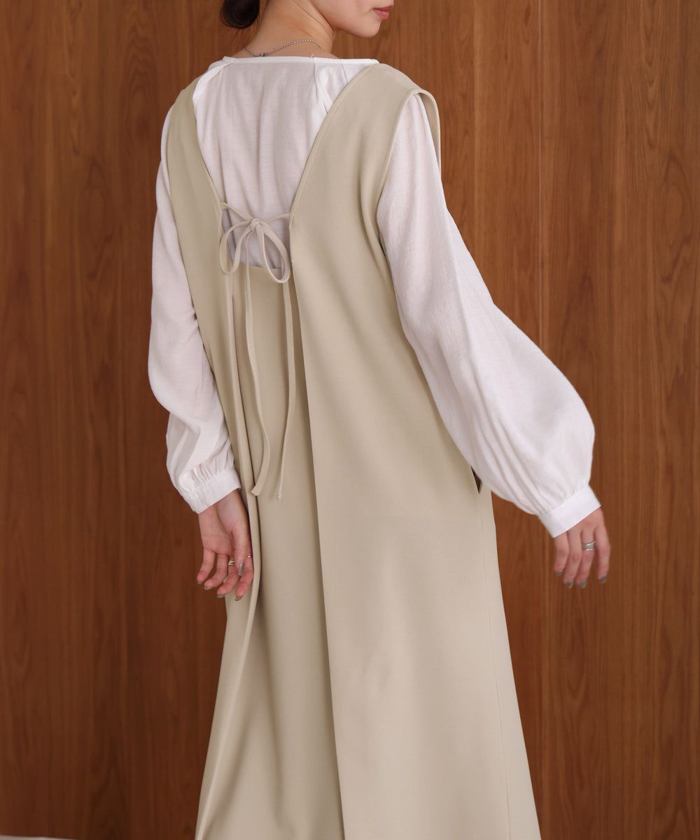 日本 Bab - 前後2way甜美百搭綁帶背心裙/洋裝-杏