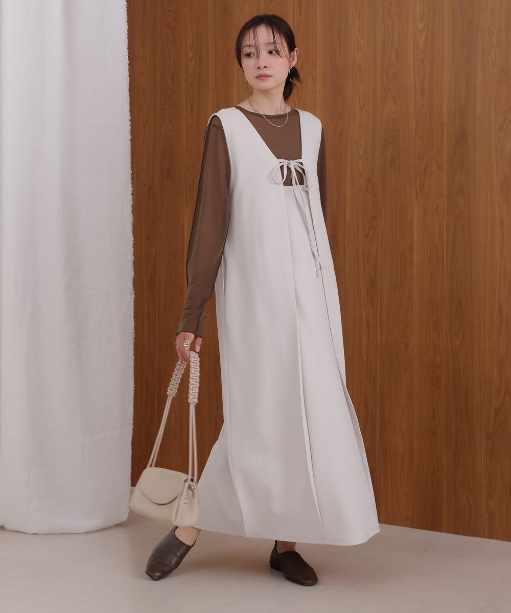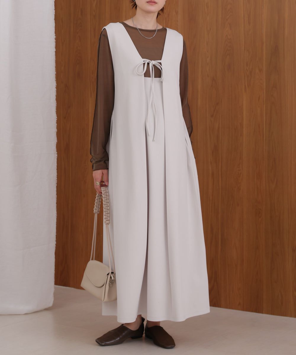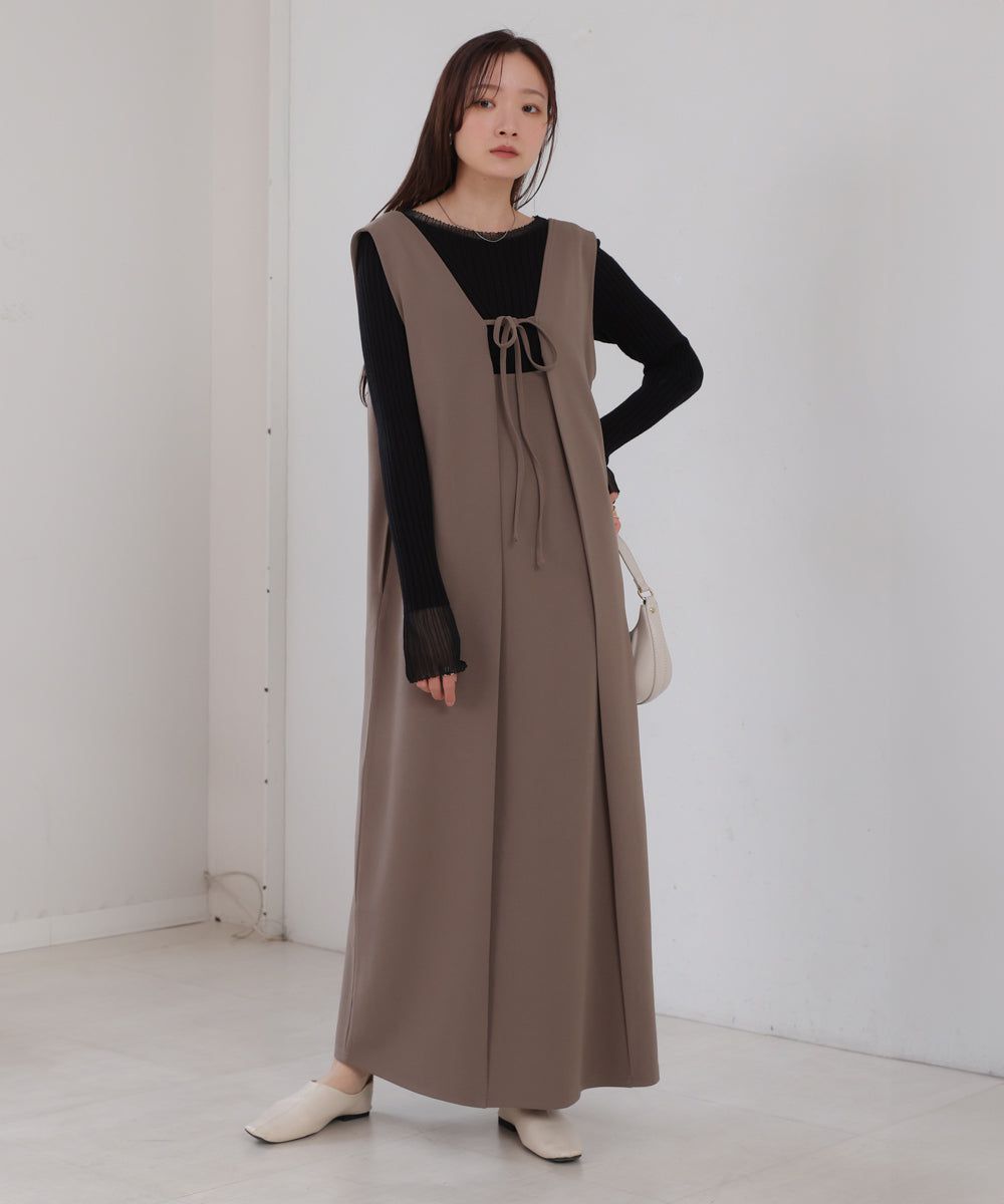 日本 Bab - 前後2way甜美百搭綁帶背心裙/洋裝-杏