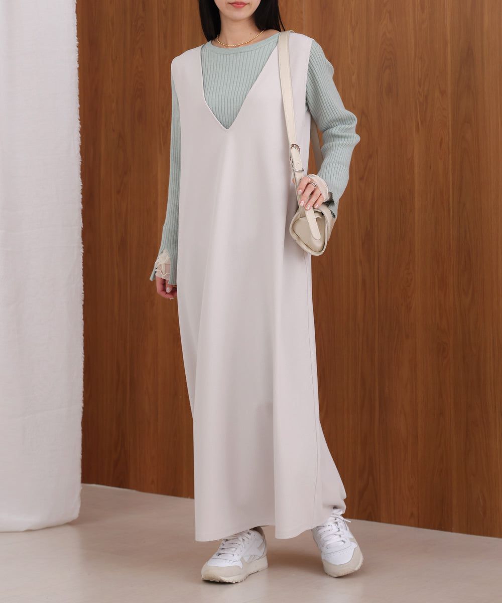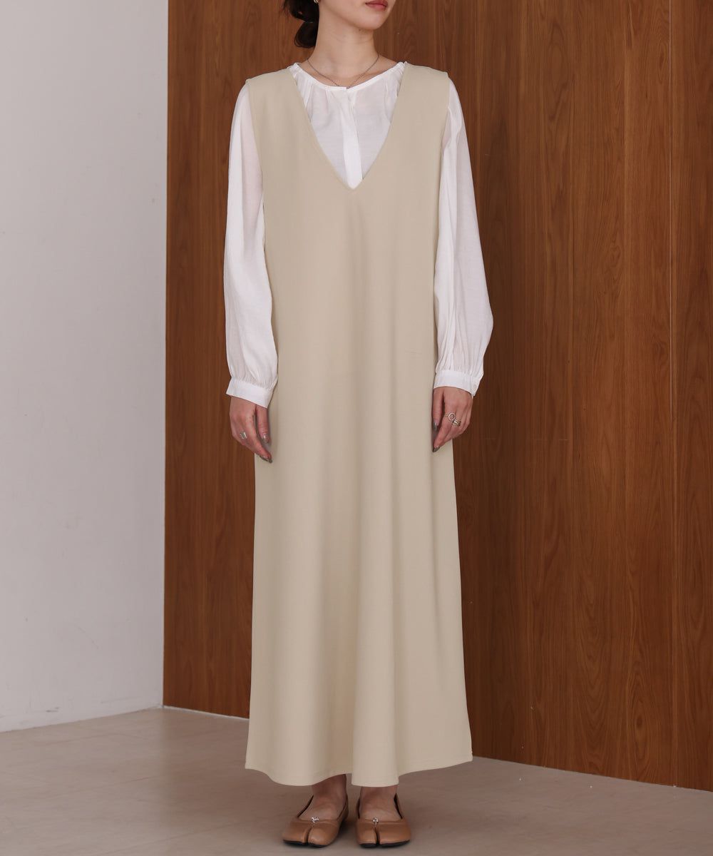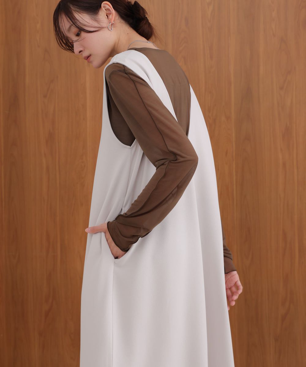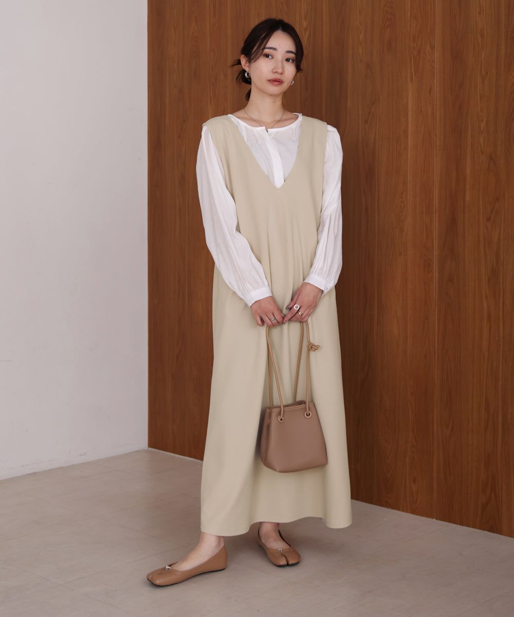 日本 Bab - 前後2way甜美百搭綁帶背心裙/洋裝-杏