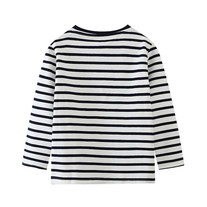 圓領棉質長袖上衣-可愛天竺鼠-黑白條紋