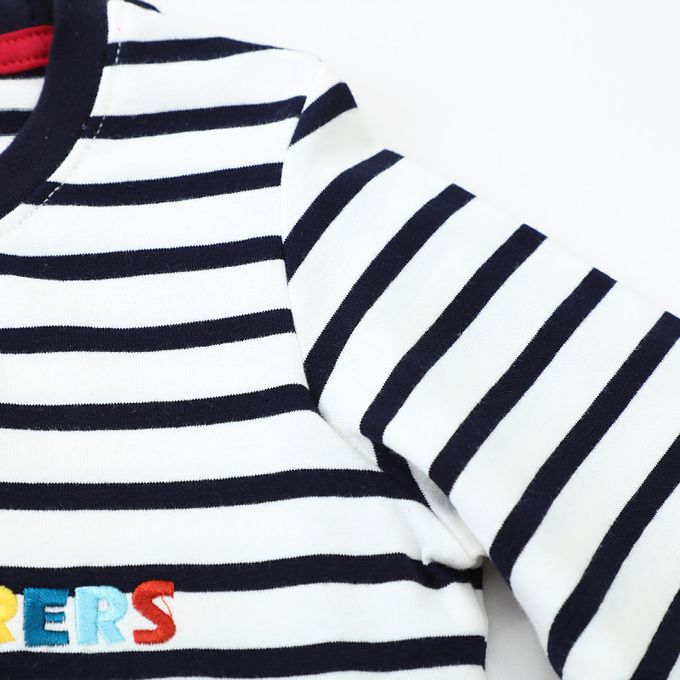 Jumping meters - 圓領棉質長袖上衣-紅黃綠工程車-黑白條紋