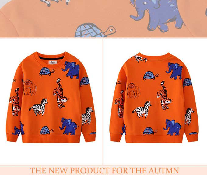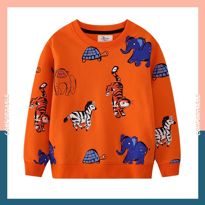 Jumping meters - 圓領棉質長袖上衣/大學T-毛筆邊框動物-橘色