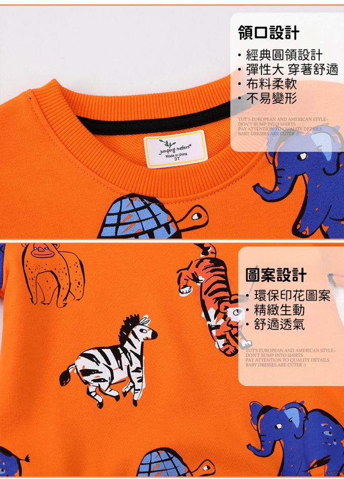 衣服品質是不錯!但給尺寸的方式不ok,看照片可以知道我買三件同jumping meters牌子110-120cm、二件BE TOP牌子120cm,但為何前者jumping meters給的尺寸卻不一樣(即2件5T、1件6T),讓人覺得廠商在給尺寸方式上很不ok!!!