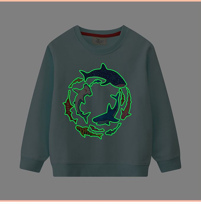 Jumping meters - 夜光圓領棉質長袖上衣/大學T-深海鯊魚-黃色
