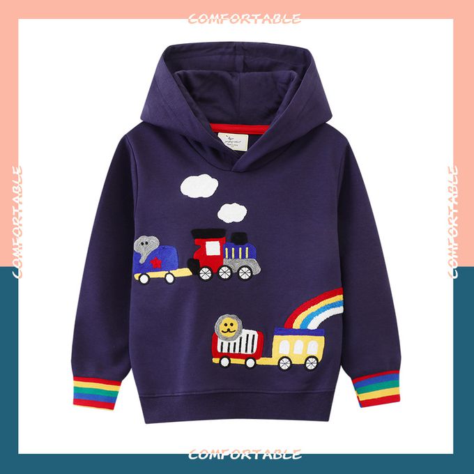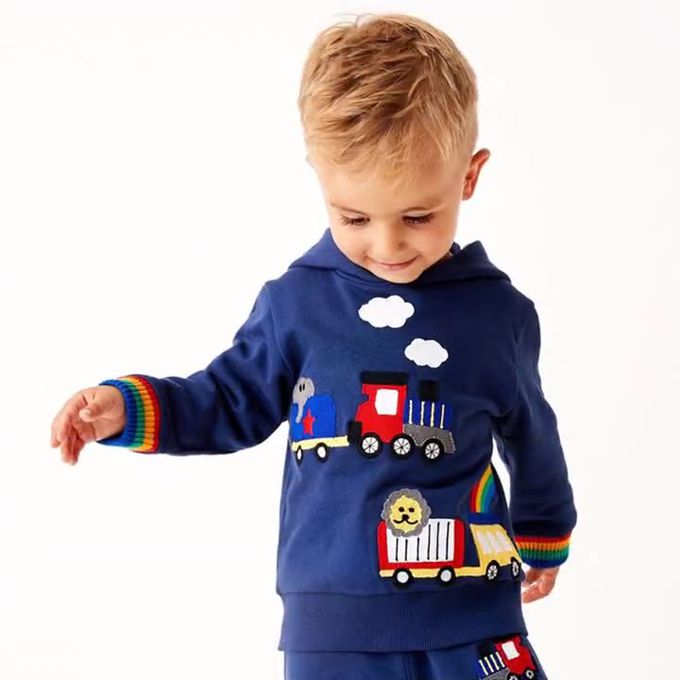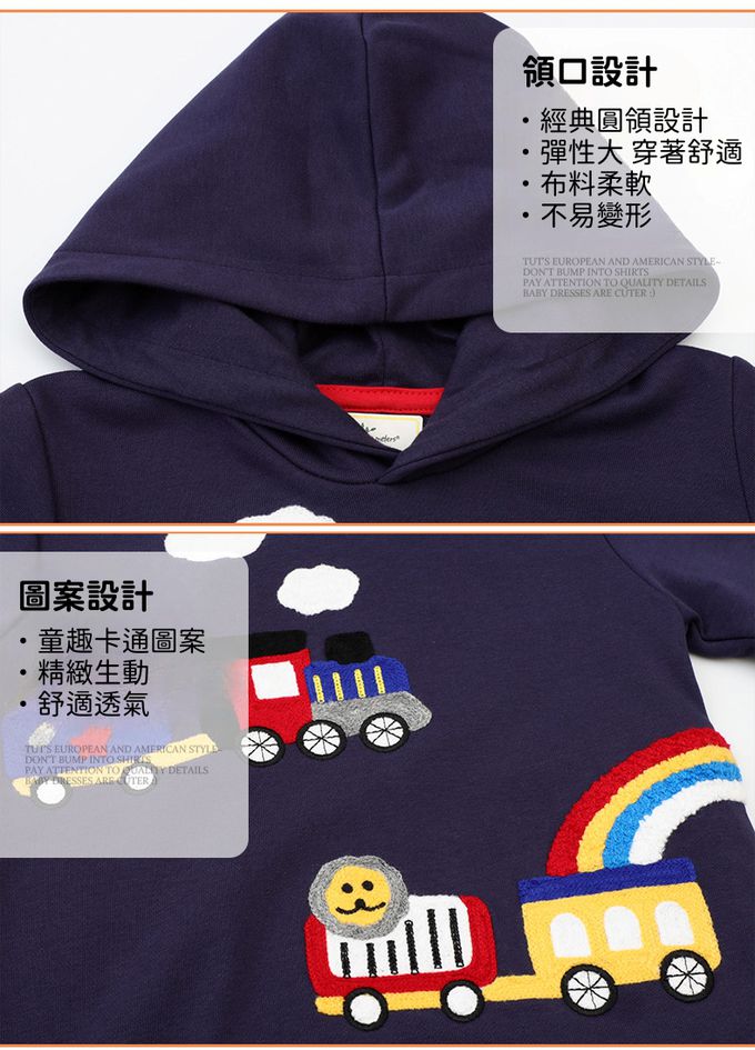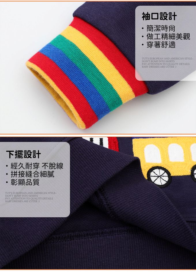 連帽棉質長袖上衣-彩虹動物車車-藏青
