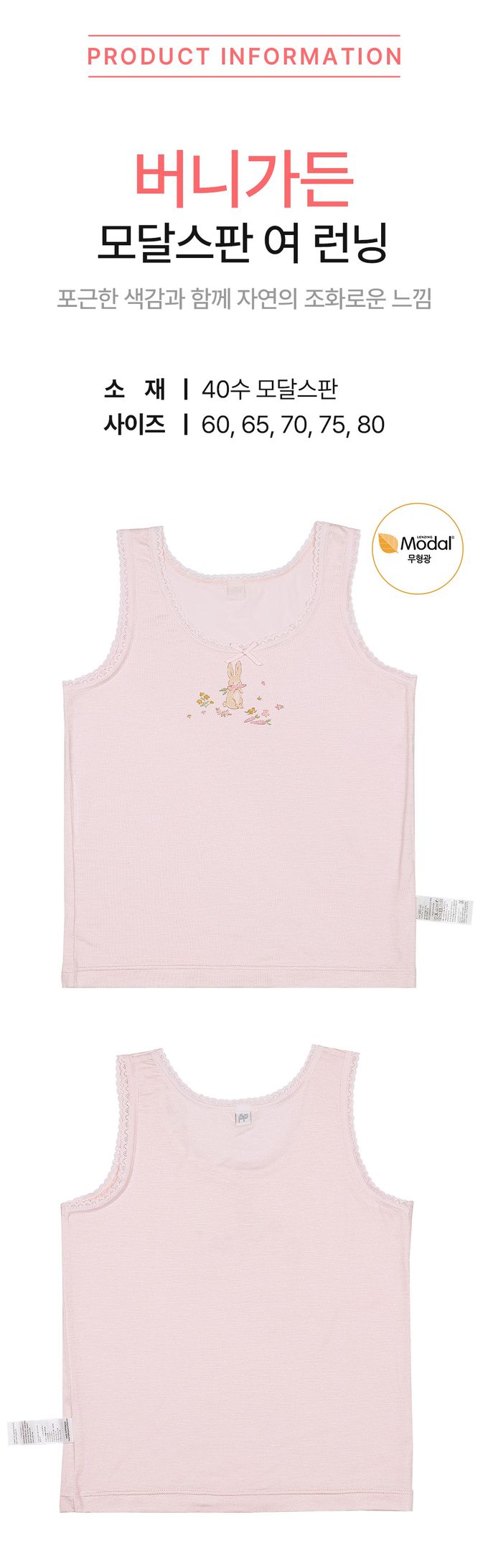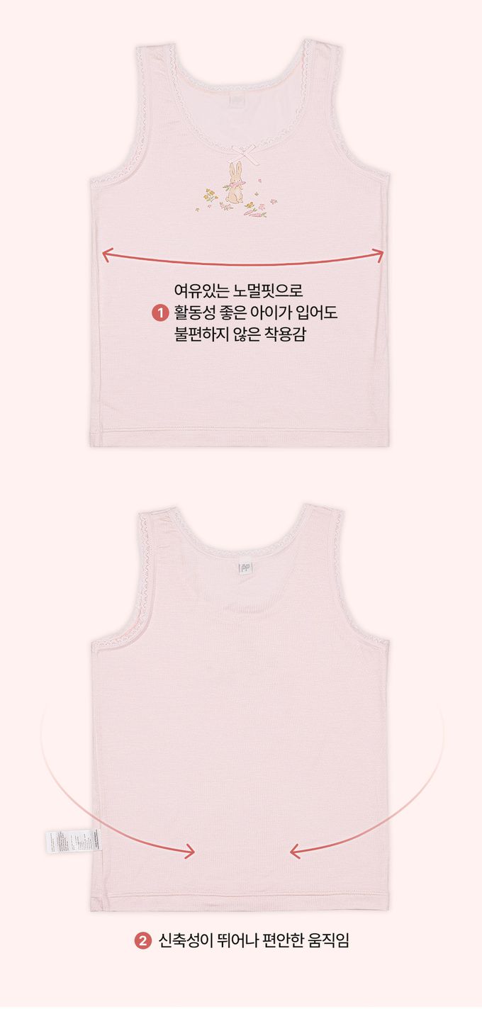 韓國 Ppippilong - 莫代爾親膚絲滑背心內衣(女寶)-胡蘿蔔兔子-粉