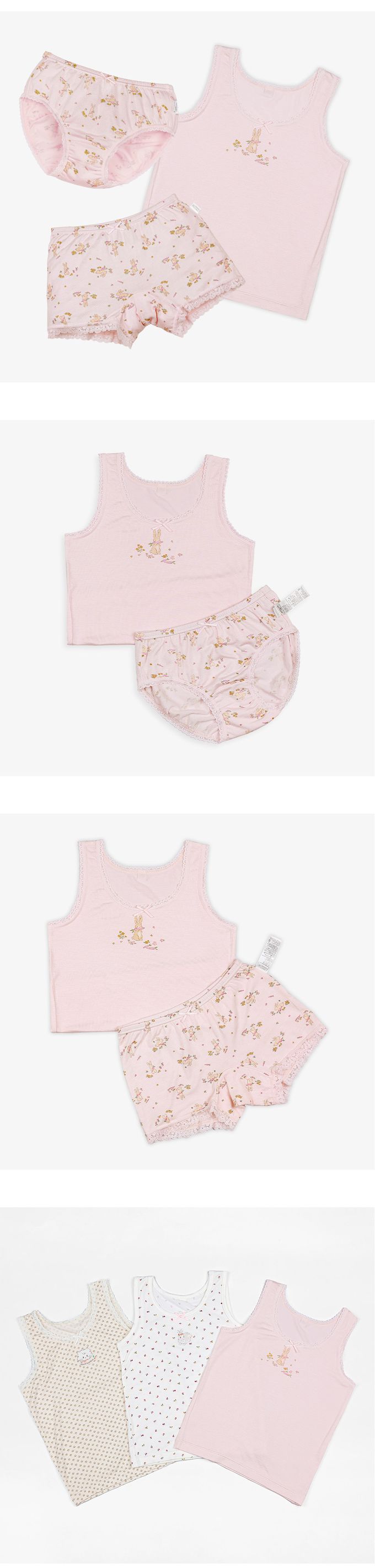 韓國 Ppippilong - 莫代爾親膚絲滑背心內衣(女寶)-松鼠與兔子-淡粉