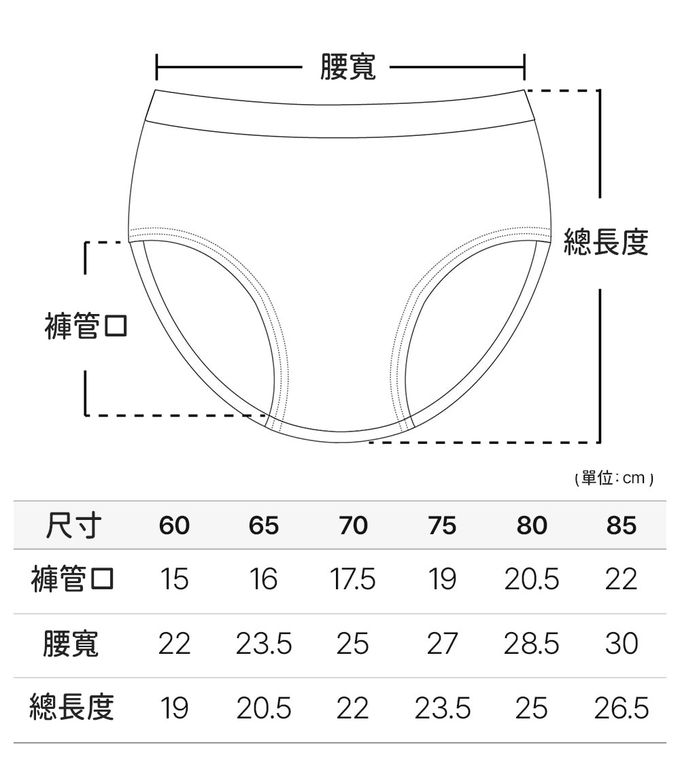 1. 尺寸表單位皆為公分(cm),實際尺寸會因布料彈性、水洗、測量起迄點等因素略有誤差。