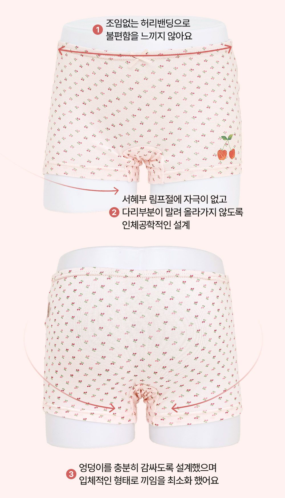 韓國 Ppippilong - 莫代爾親膚絲滑四角褲(女寶)-可愛紅櫻桃-淡粉膚