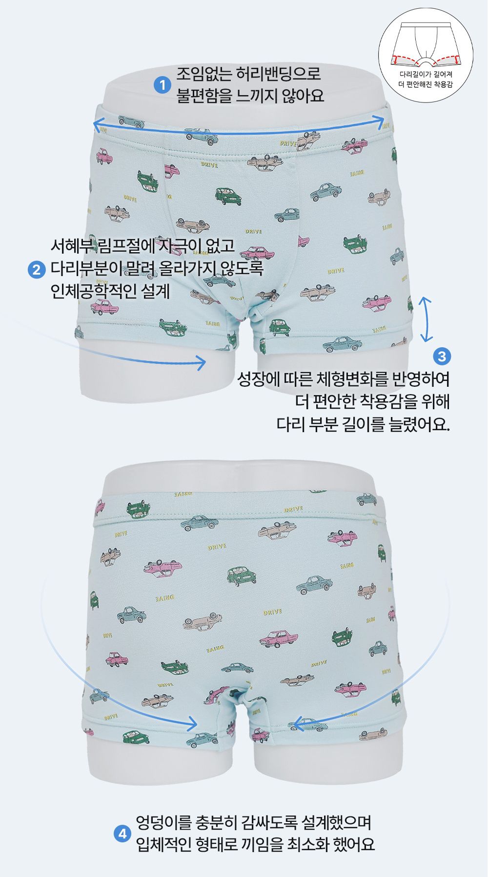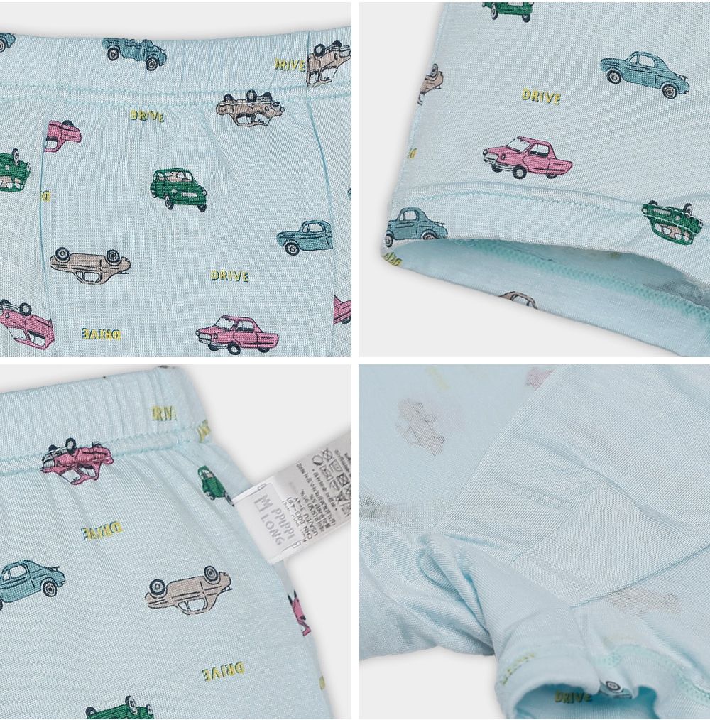 韓國 Ppippilong - 莫代爾親膚絲滑四角褲(男寶)-漫畫車車-灰藍