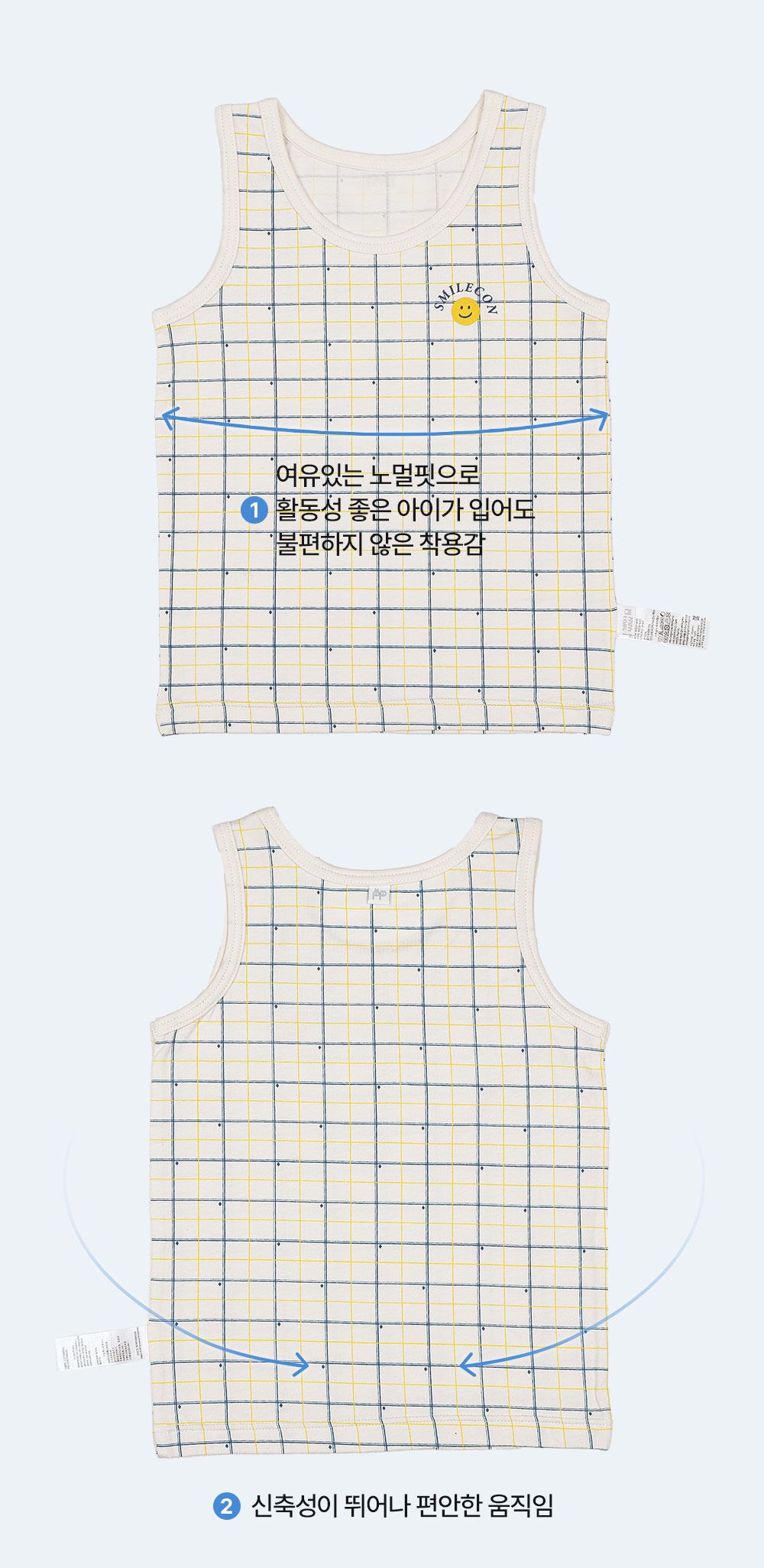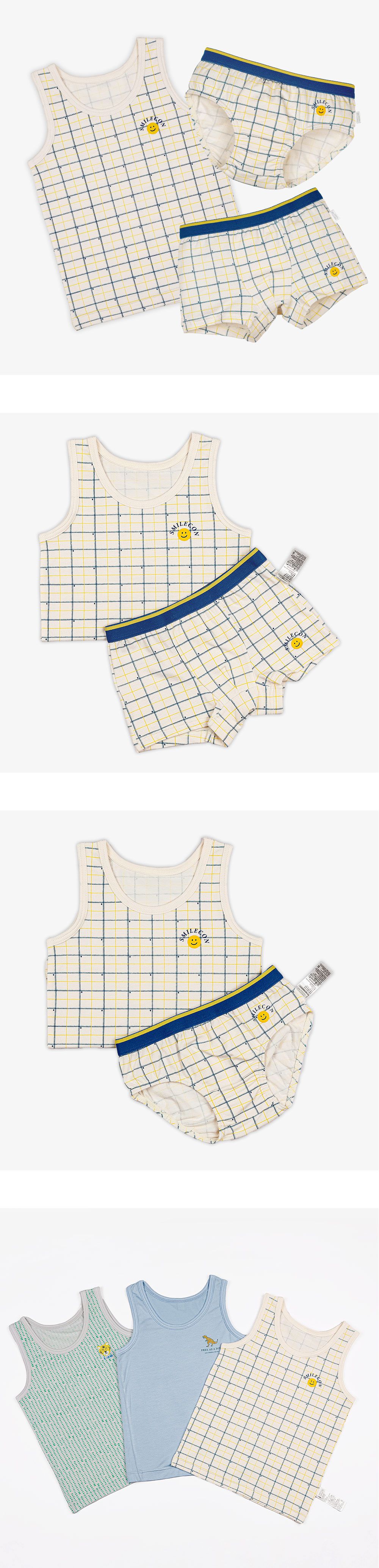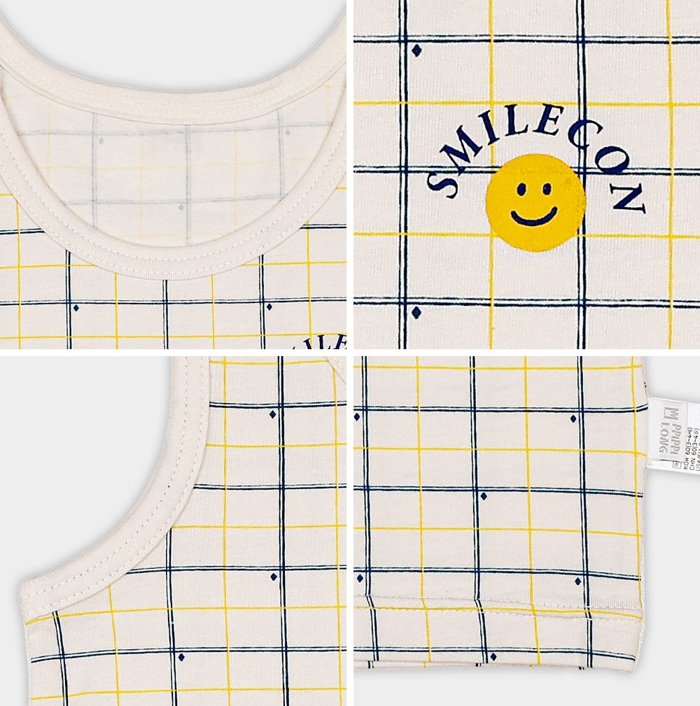 韓國 Ppippilong - 輕柔棉透氣背心內衣(男寶)-格紋笑臉-米