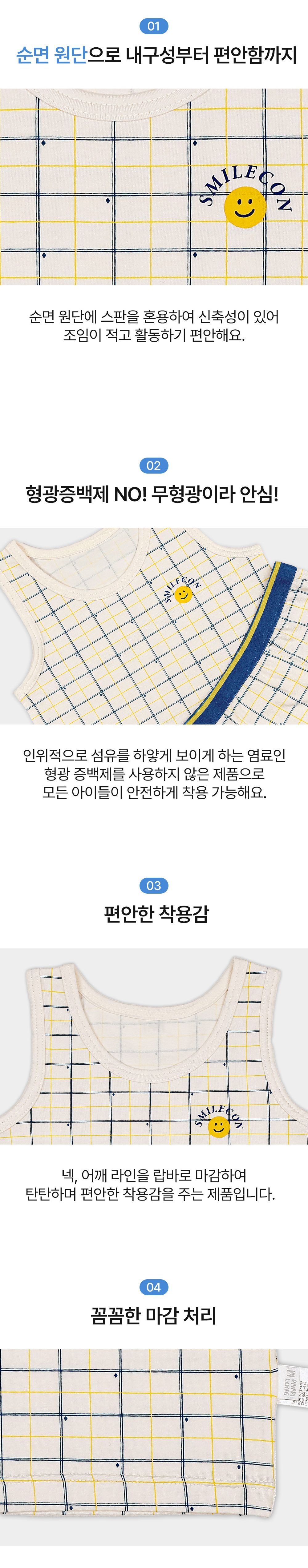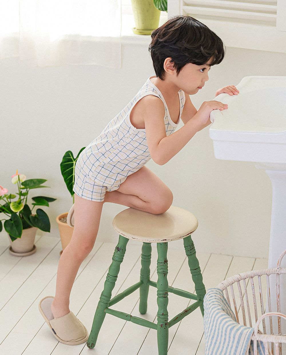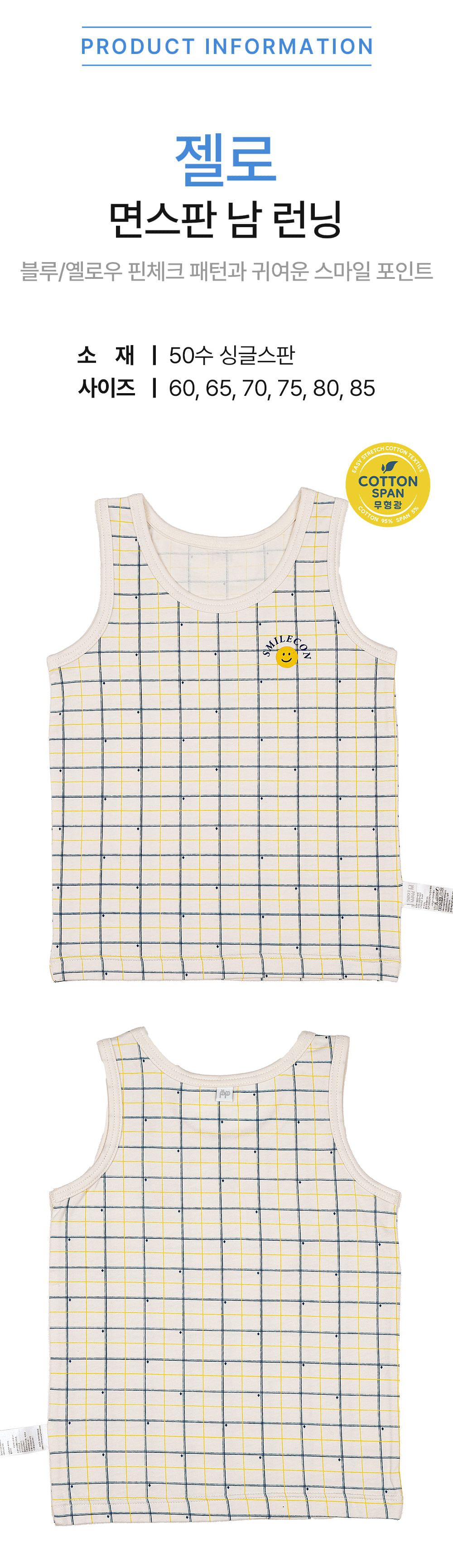 韓國 Ppippilong - 輕柔棉透氣背心內衣(男寶)-格紋笑臉-米