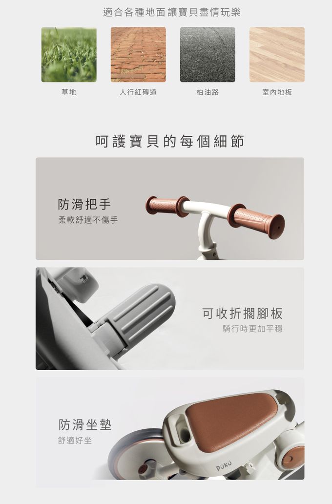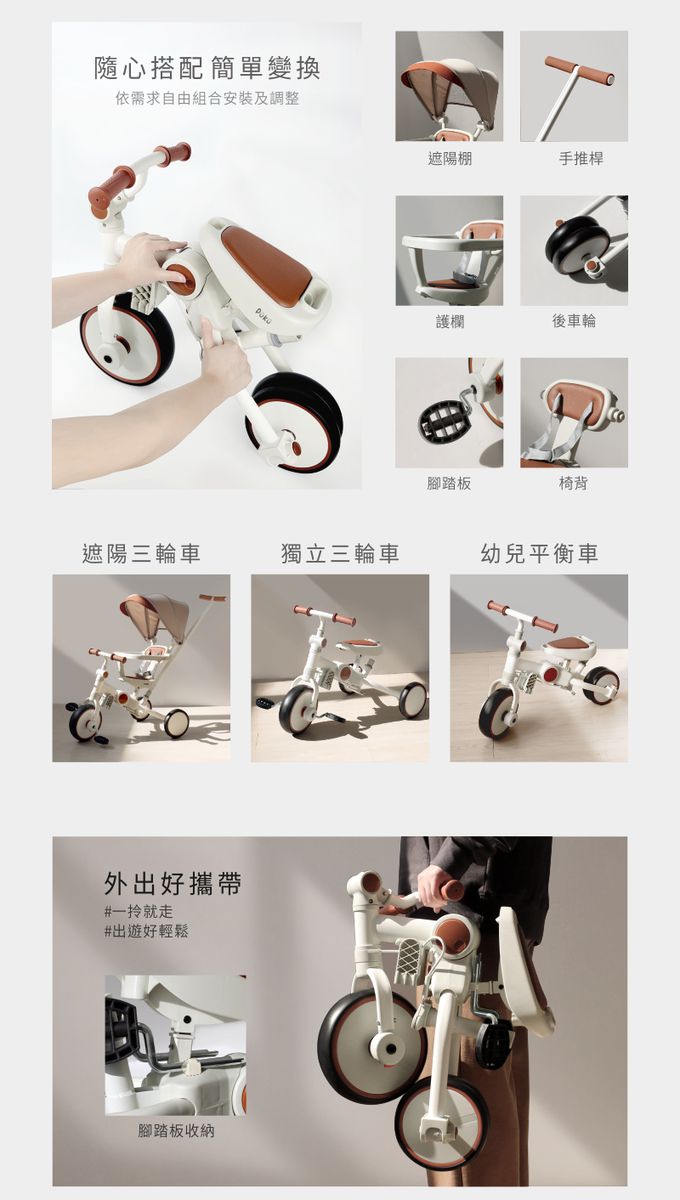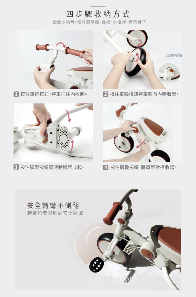 注意事項:組裝本車時,請務必由大人操作安裝 推行三輪車模式,務必將擱腳板放下 請勿將手提袋掛在手把車,以免造成車體翻覆 請勿乘坐在護欄上,避免斷裂及車體翻覆 圖片僅供參考,以實際供貨商品為主