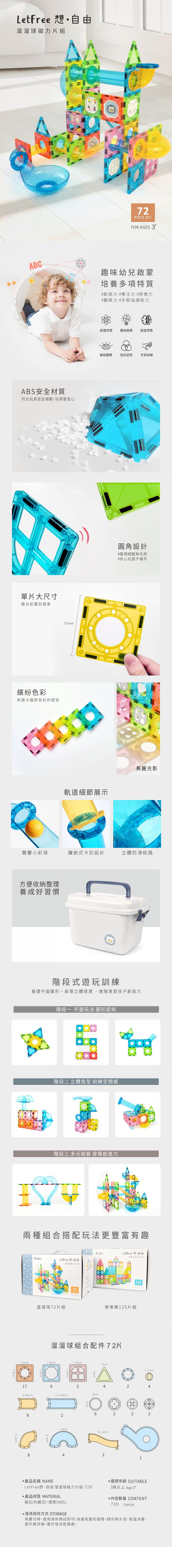 品名:LetFree想•自由 溜溜球磁力積木組72片(附收納盒)