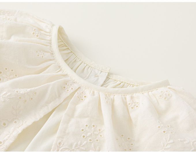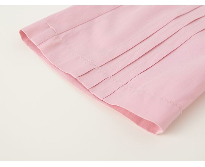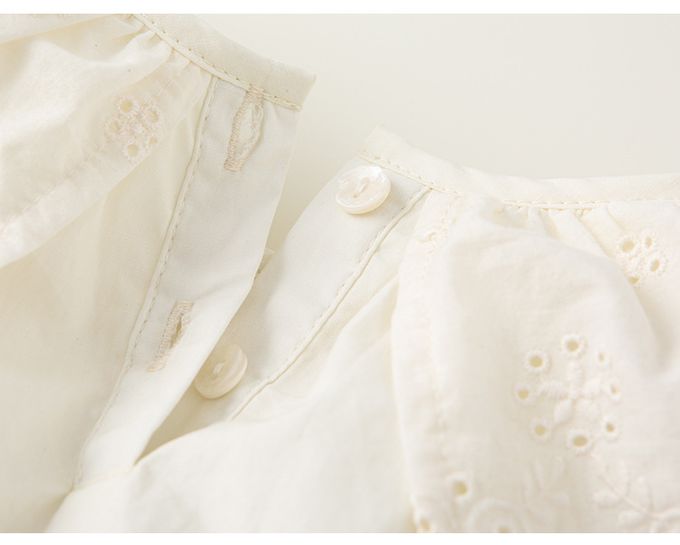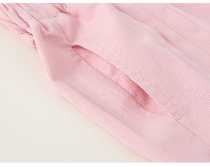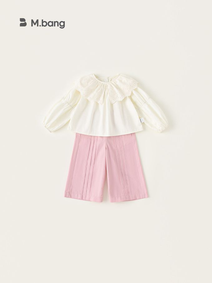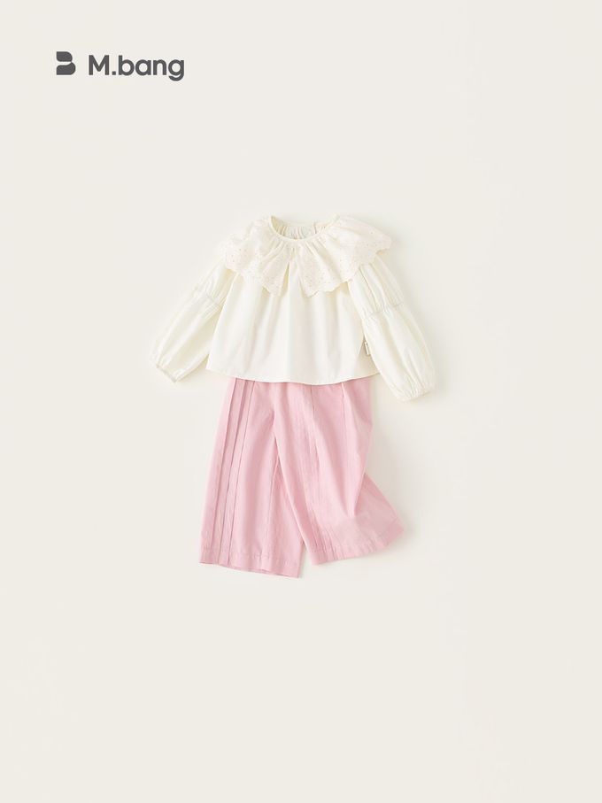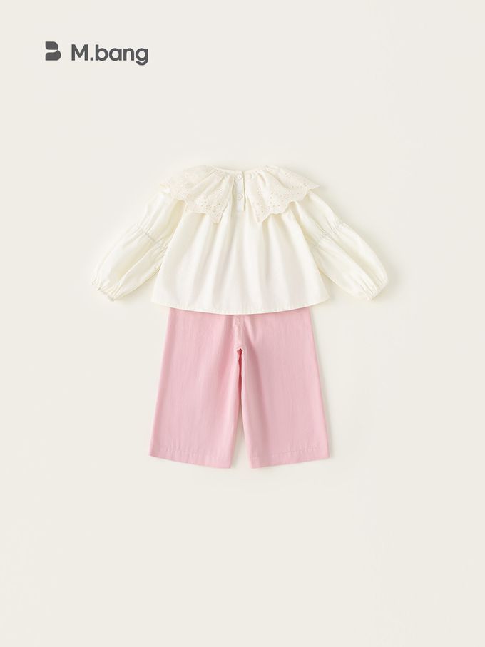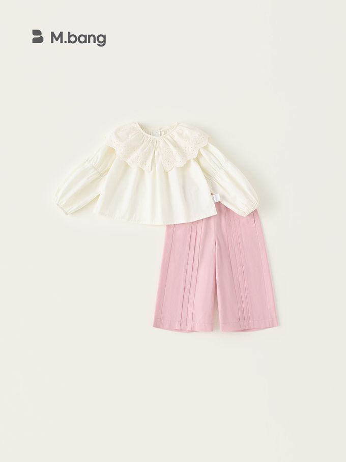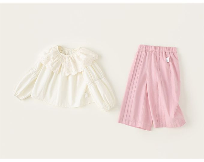純棉襯衫+休閒百搭寬褲兩件式套裝-蕾絲領-米白+粉