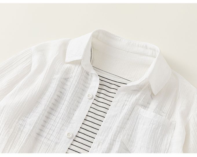 品名:休閒百搭翻領襯衫+背心兩件式套裝