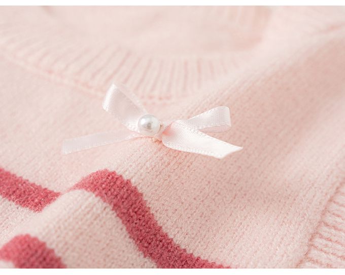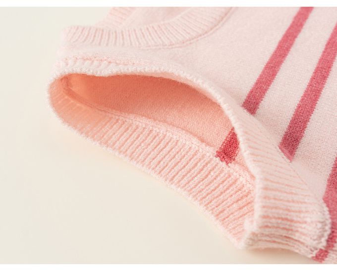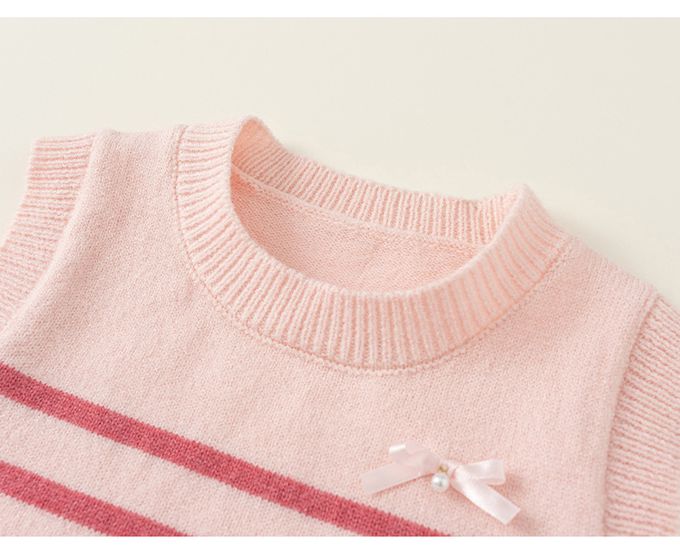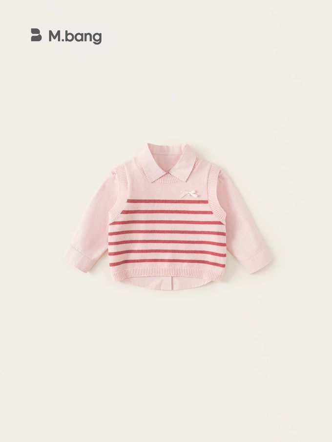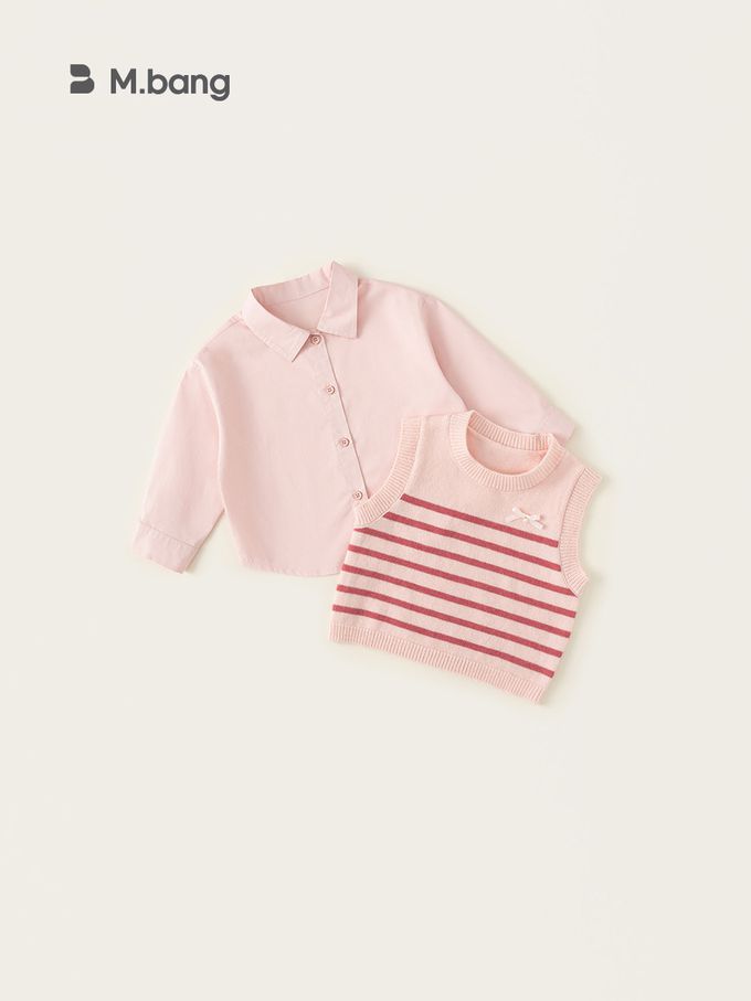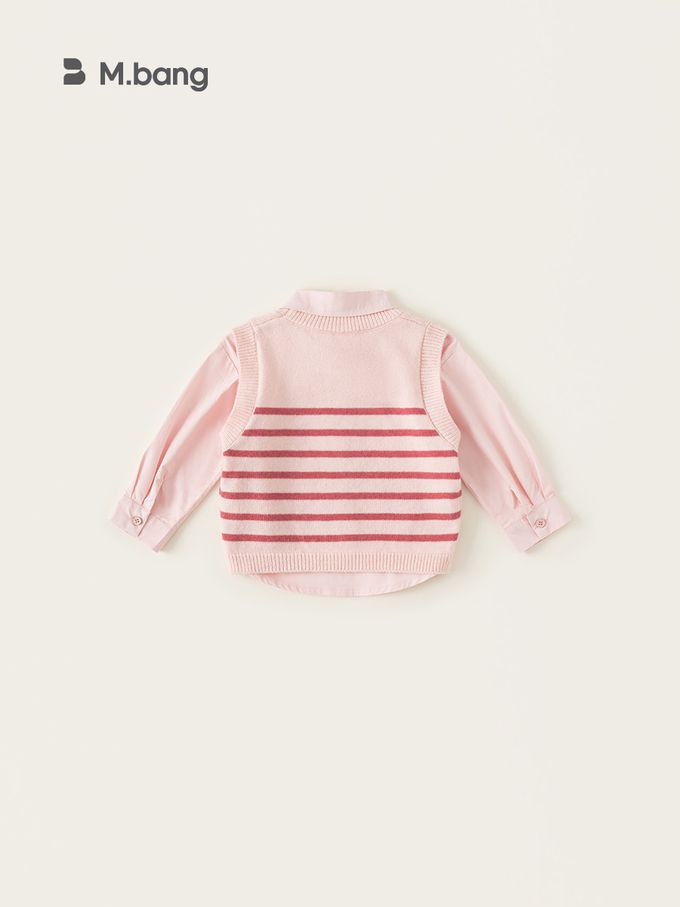 純棉襯衫+蝴蝶結針織背心兩件式套裝-條紋-粉色