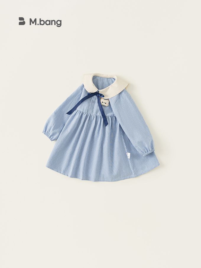 品名:小清新娃娃立體造型領格子洋裝