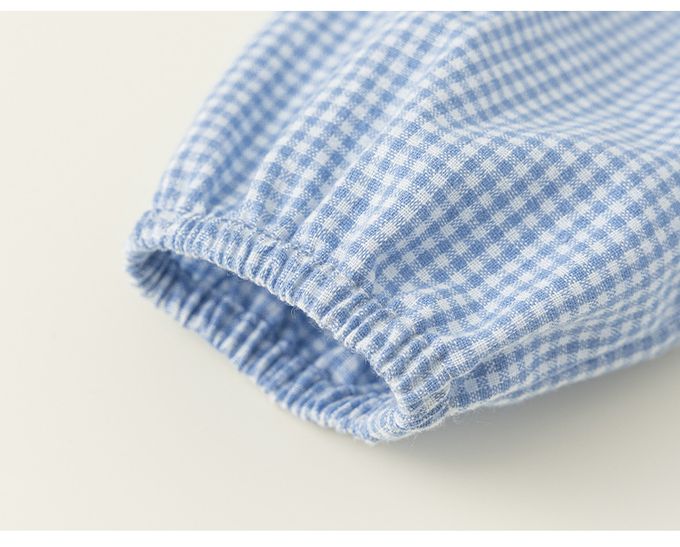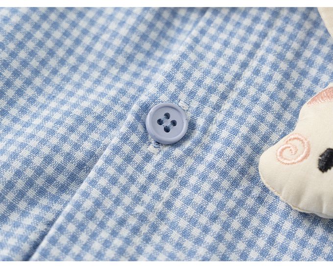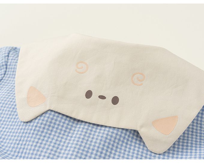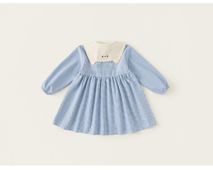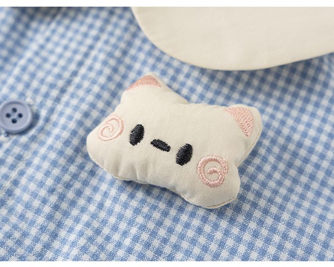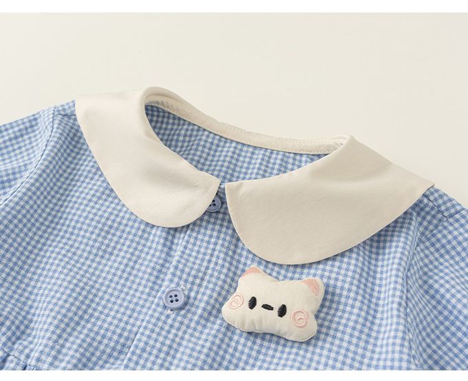 小清新娃娃立體造型領格子洋裝-貓咪-藍色