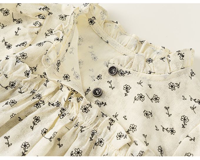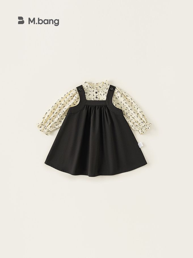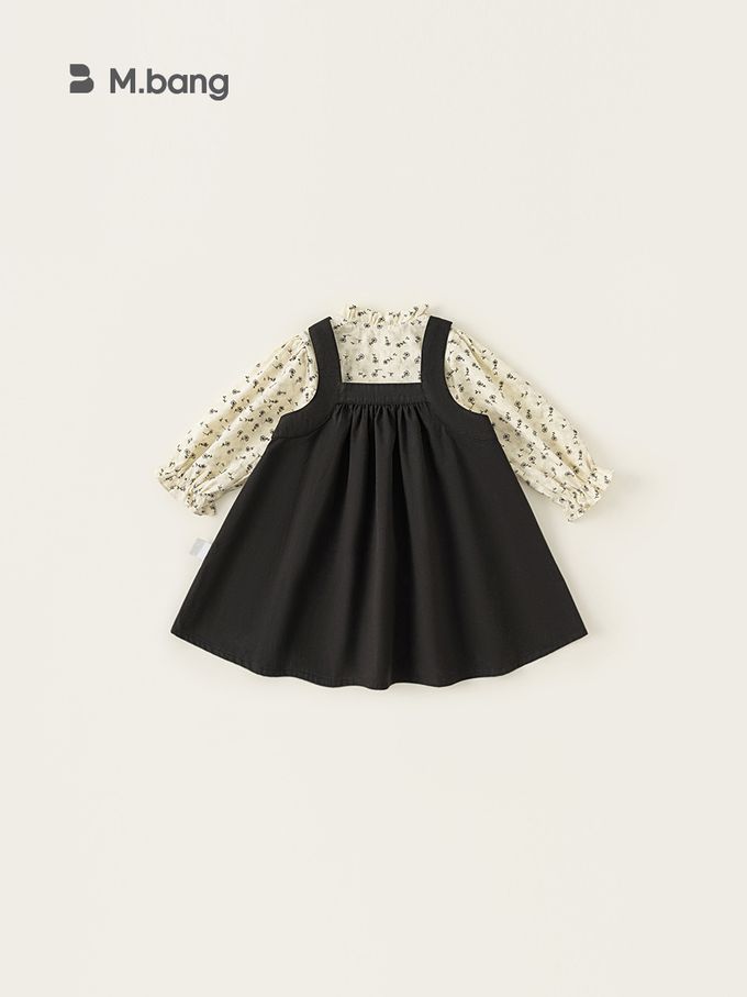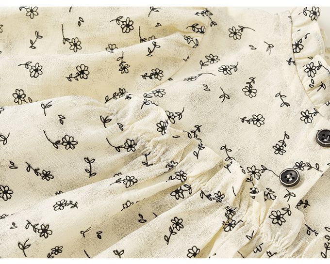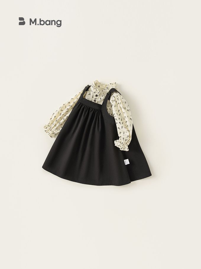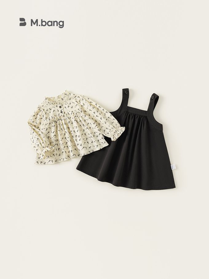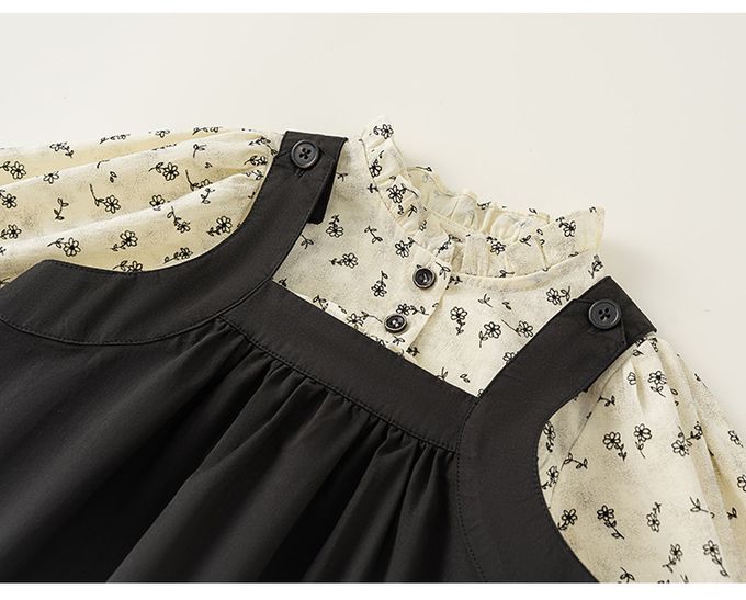 純棉襯衫+吊帶裙兩件式套裝-小碎花-米杏+黑