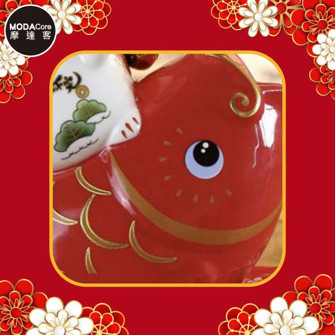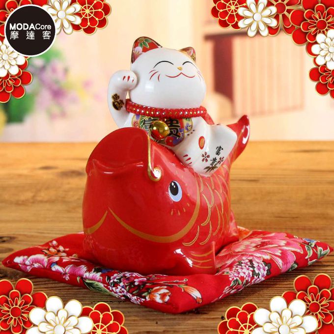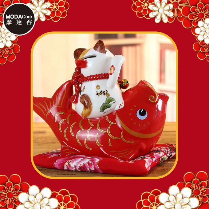 品名:◉春節開運招財◉年年有魚躍龍門招財貓(含坐墊)_撲滿存錢桶擺飾桌飾