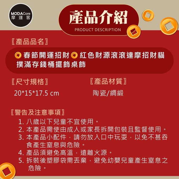 品名:◉春節開運招財◉紅色財源滾滾達摩招財貓(含坐墊)_撲滿存錢桶擺飾桌飾