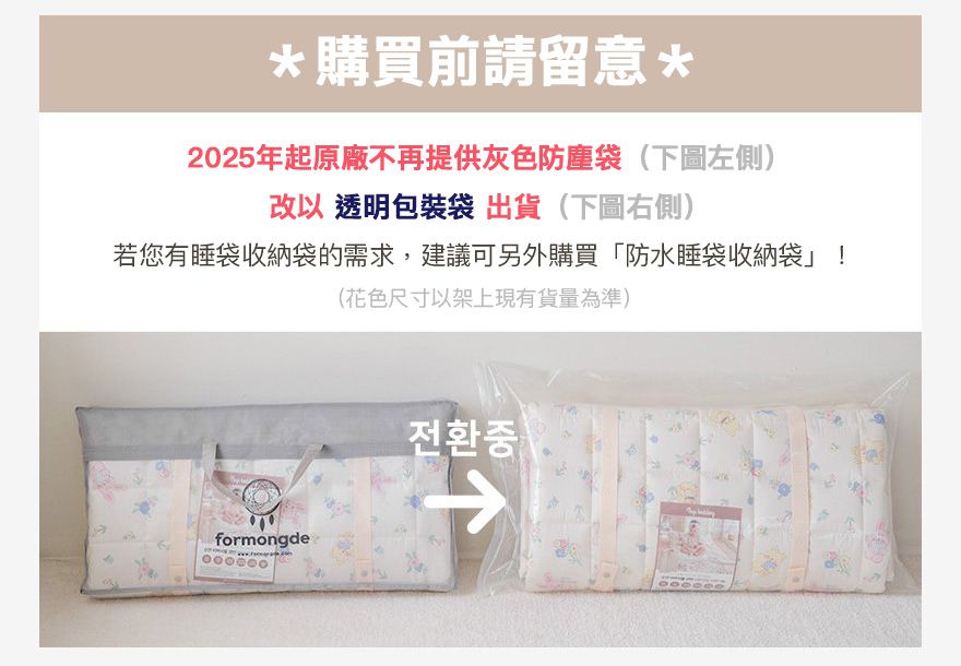 *2025年起,廠商已不再附灰色防塵袋!若有需要的媽咪可另外選購「防水睡袋收納袋」(花色以架上現有貨量為準)。