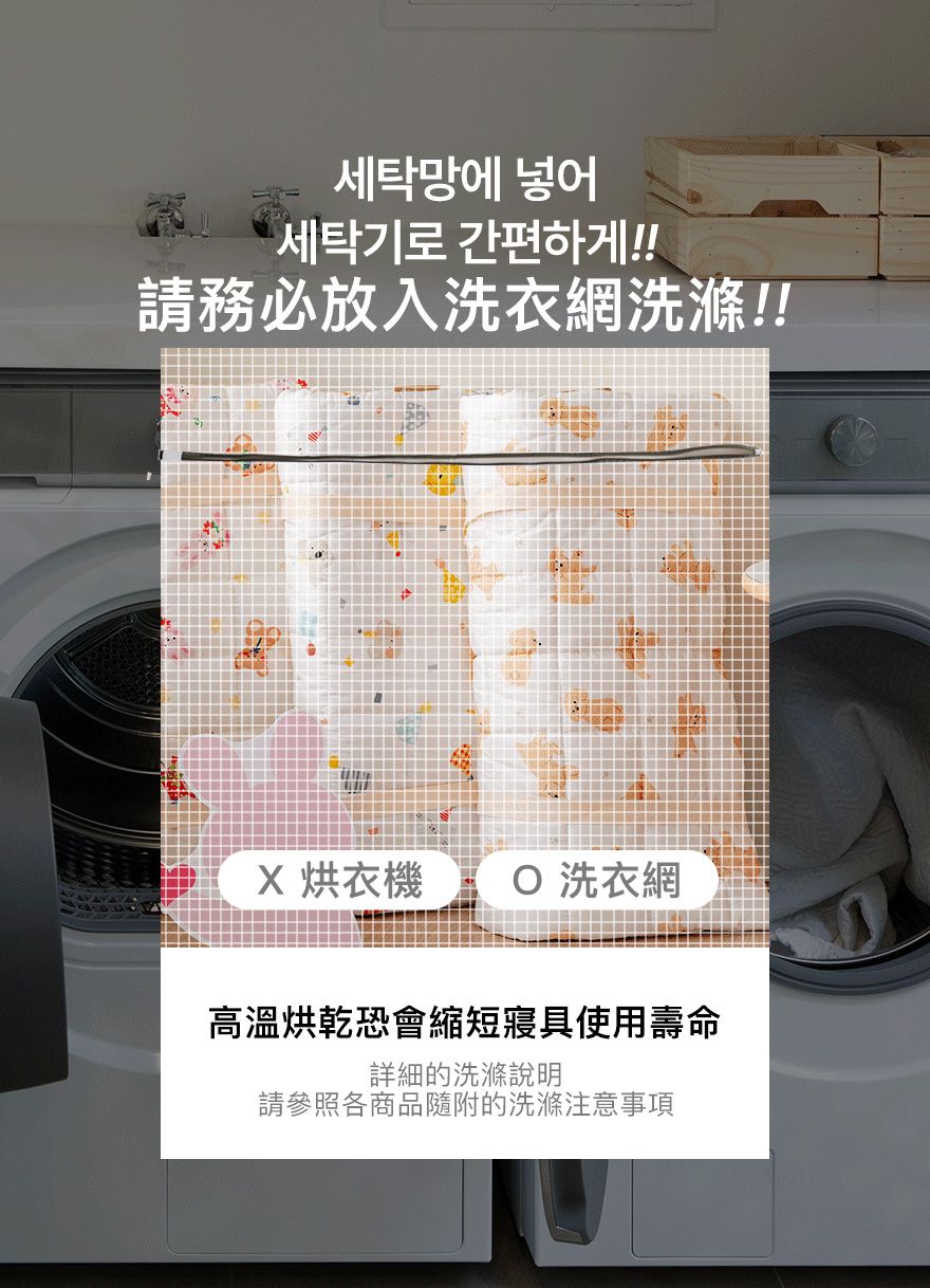 不只枕頭,整個睡袋通通可以放到洗衣網後,丟進洗衣機機洗!(枕芯洗得時候也要放洗衣網喔^^;)超方便der~睡袋這種要直接接觸孩子的東西,建議一定要常常做清洗,才不會有滋生細菌或其他不好的髒污殘留!