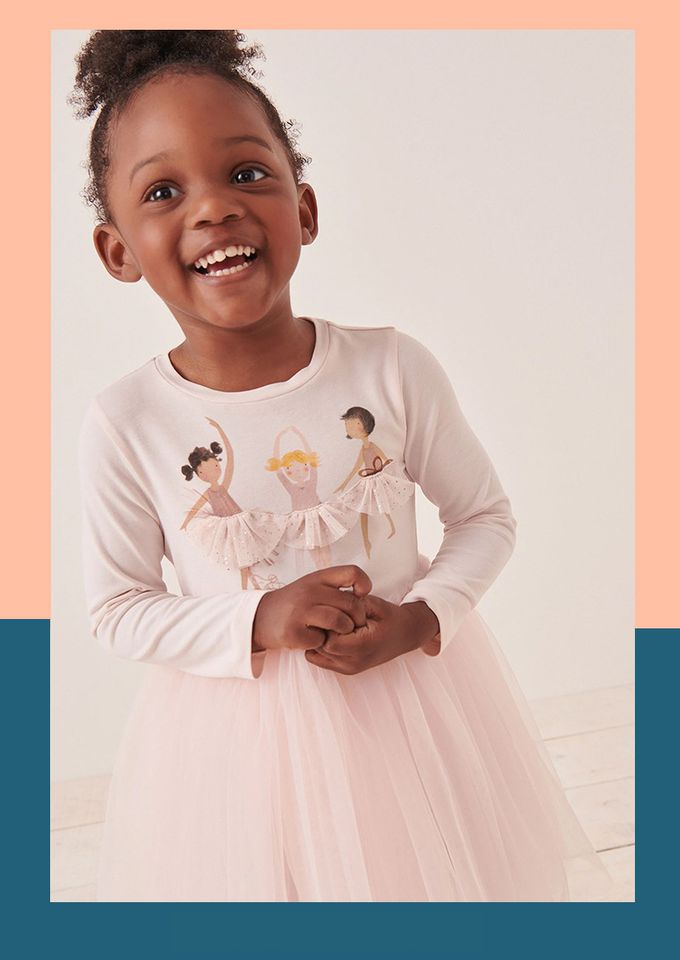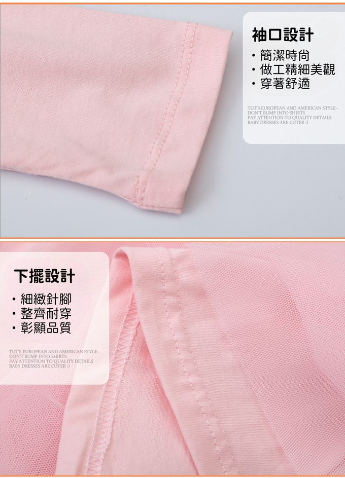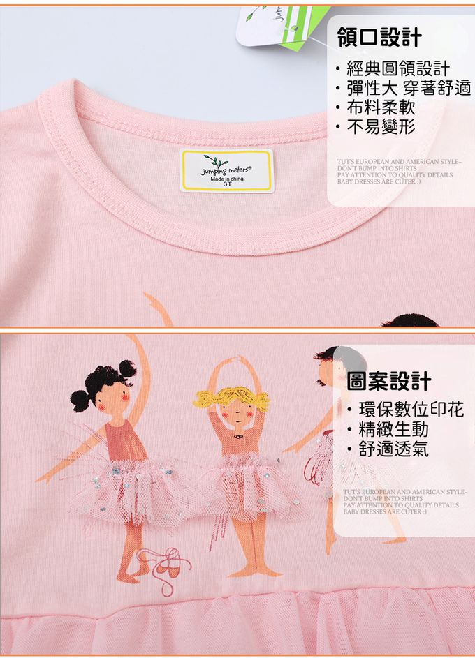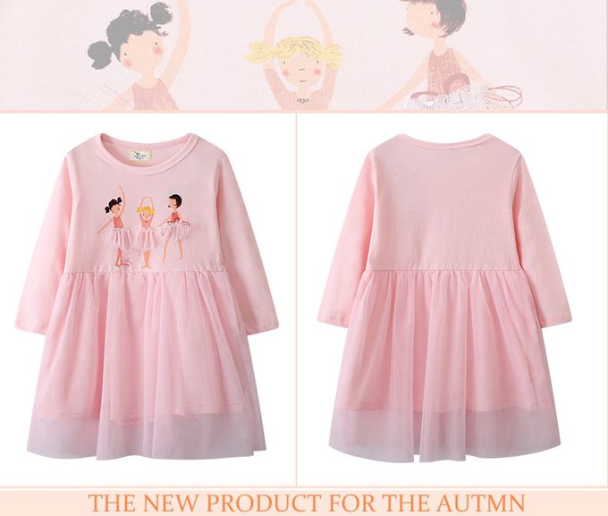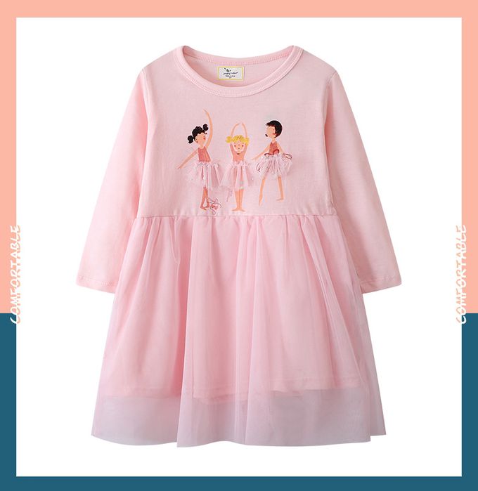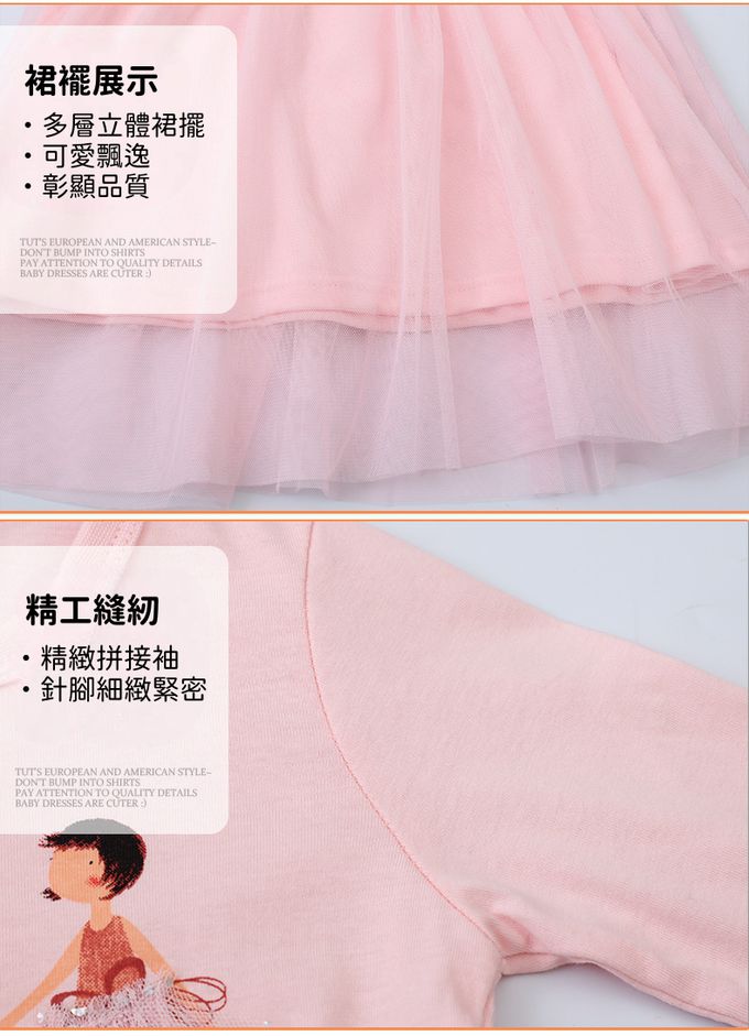 棉質圓領長袖連身網紗洋裝-立體裙擺芭蕾舞者-粉色
