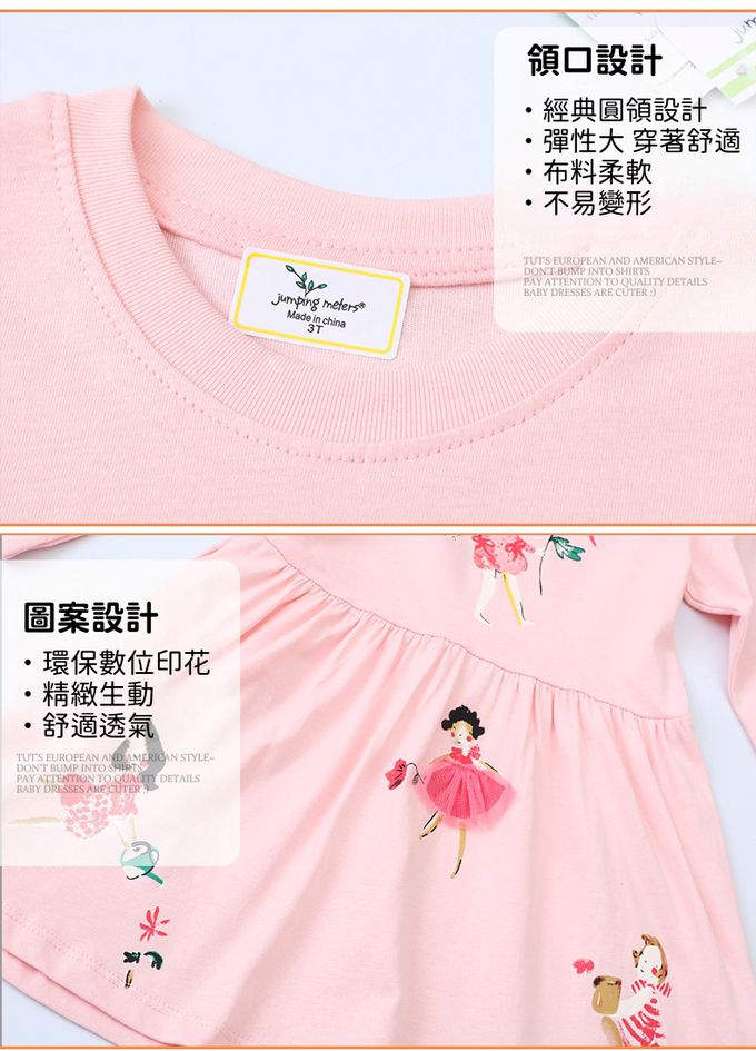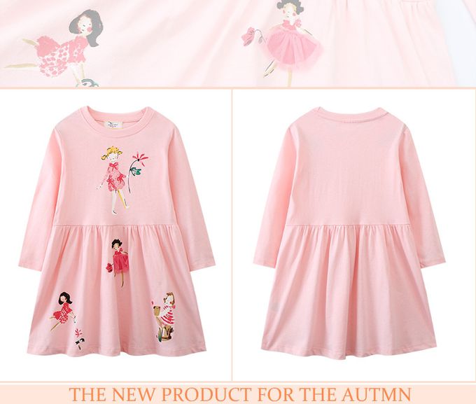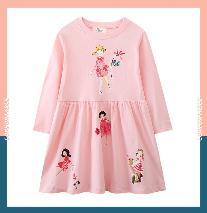 Jumping meters - 棉質圓領長袖連身洋裝-跳舞的花精靈-粉色