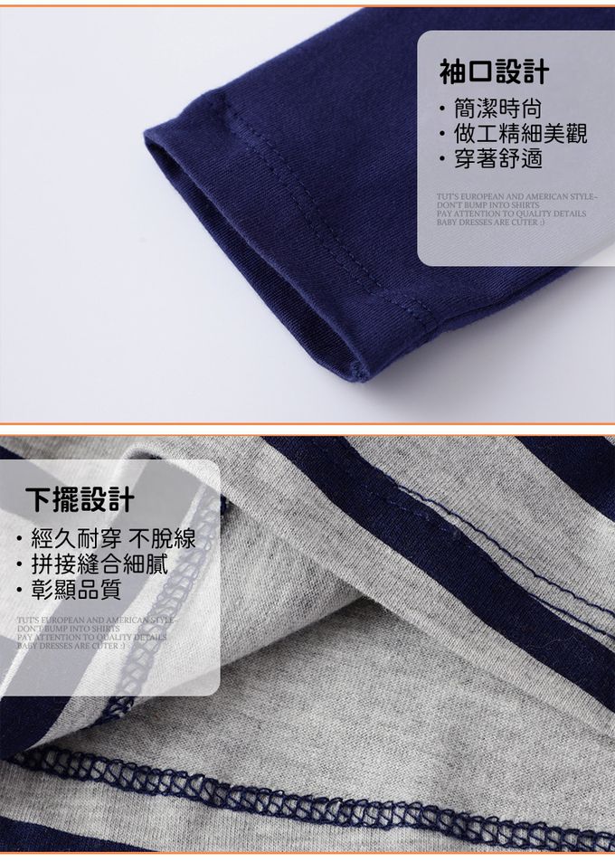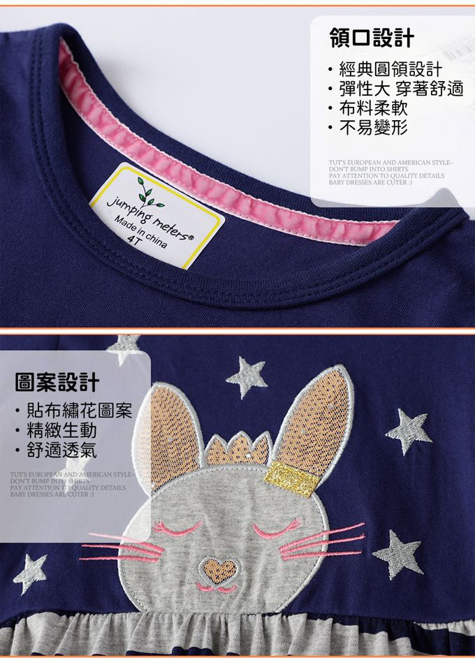 棉質圓領長袖連身洋裝-星星兔兔-藏青條紋