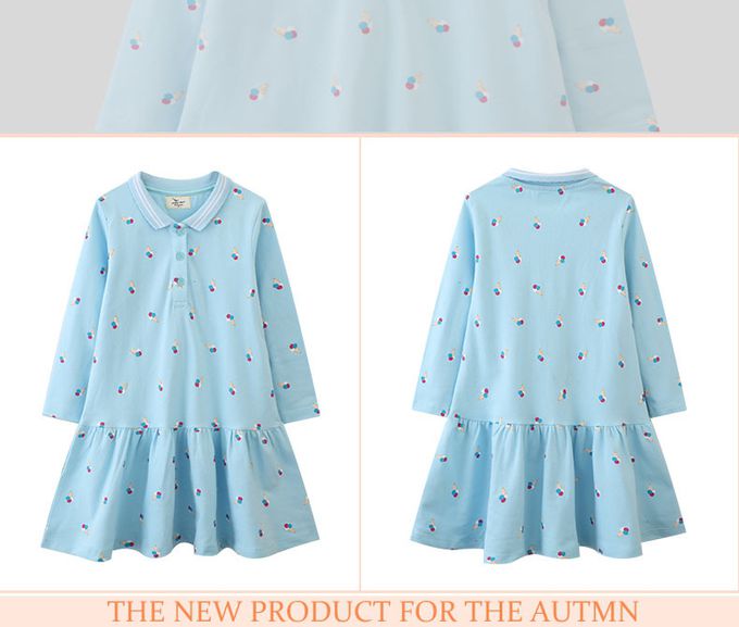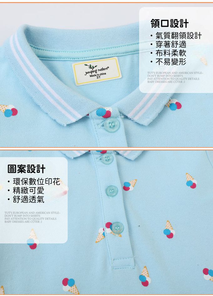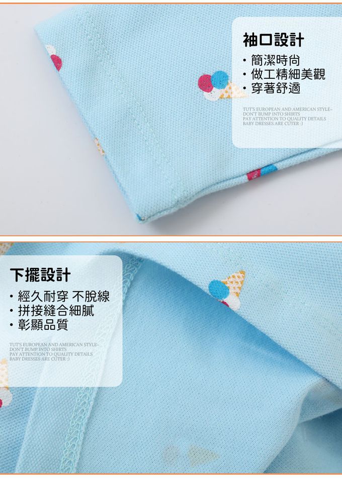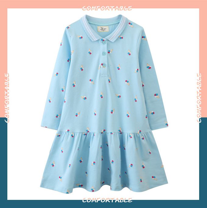 棉質翻領長袖連身洋裝-滿滿冰淇淋-藍色