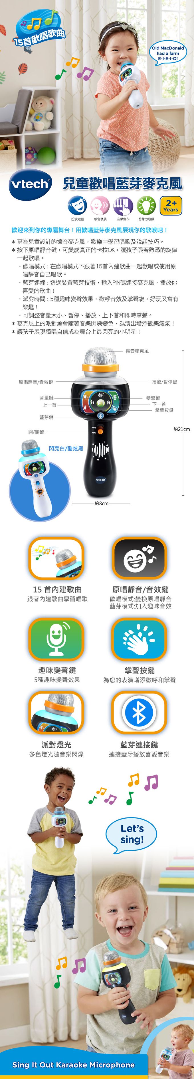 * 專為兒童設計的擴音麥克風,歡樂中學習唱歌及說話技巧。