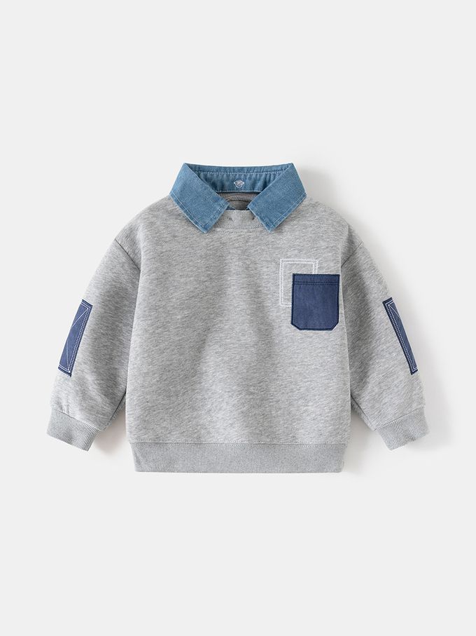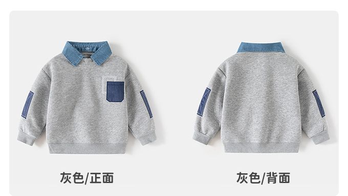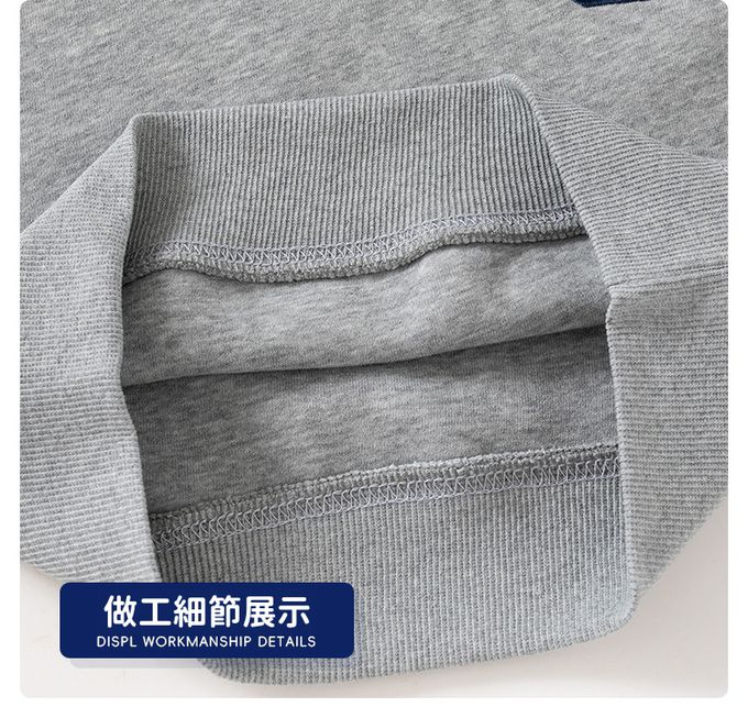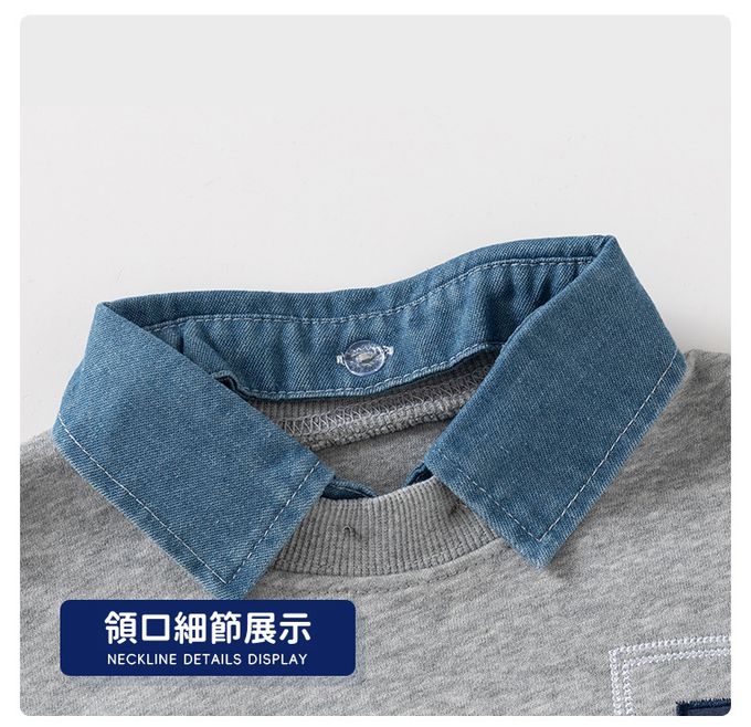 可拆式翻領棉質長袖上衣/大學T-帥氣補丁-灰色