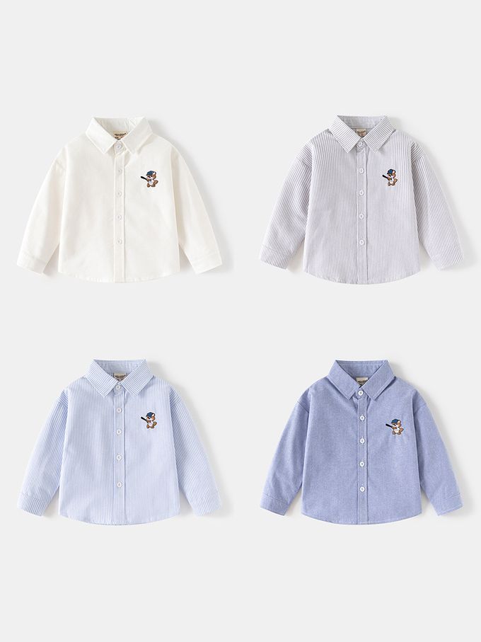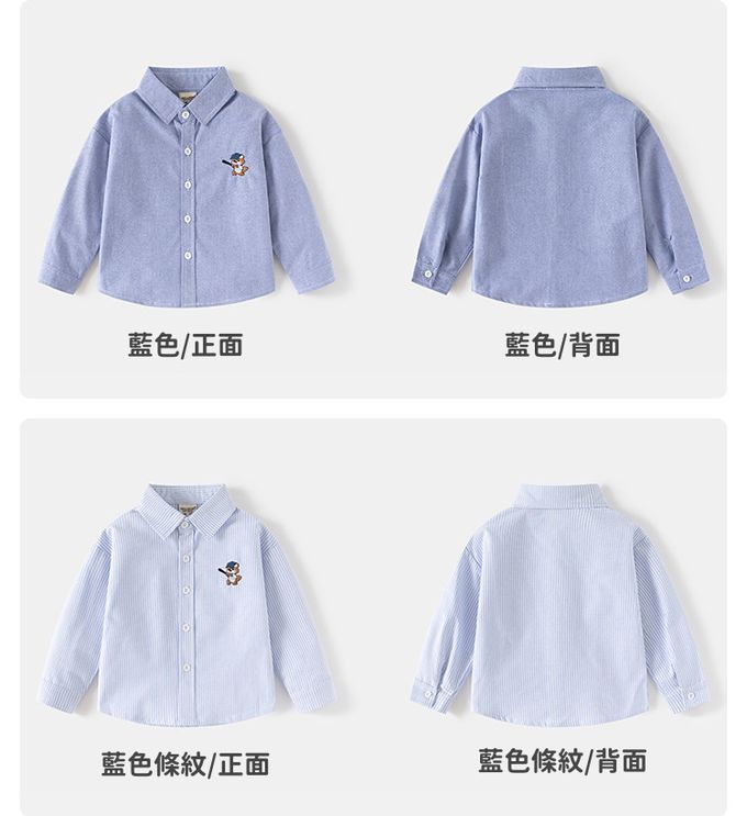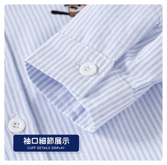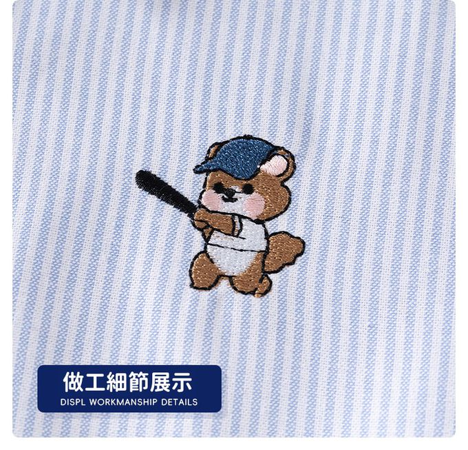 純棉休閒長袖襯衫-棒球熊-藍色條紋