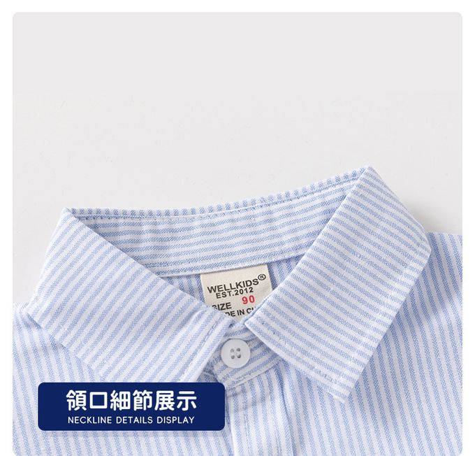 WELLKIDS - 純棉休閒長袖襯衫-熊熊領帶-藍色條紋
