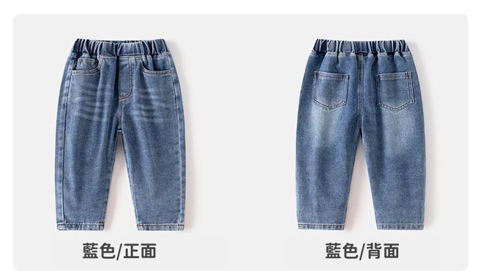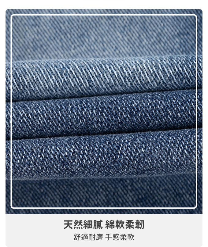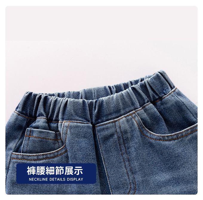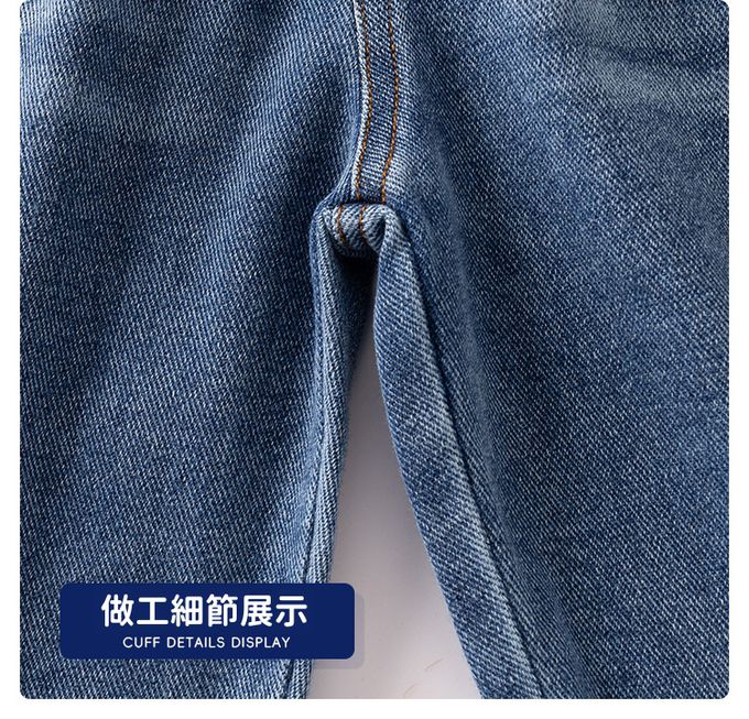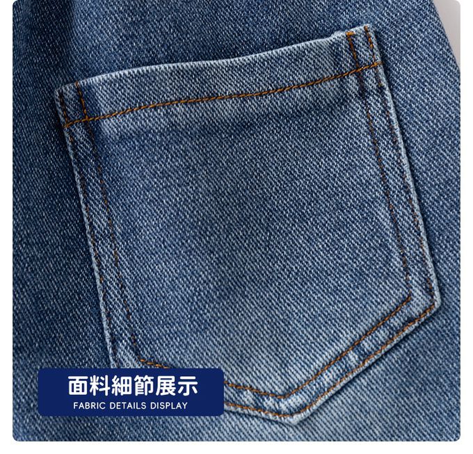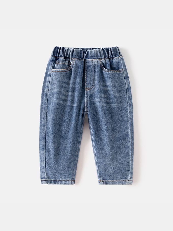 腰鬆緊休閒牛仔長褲-復古刷色-藍色