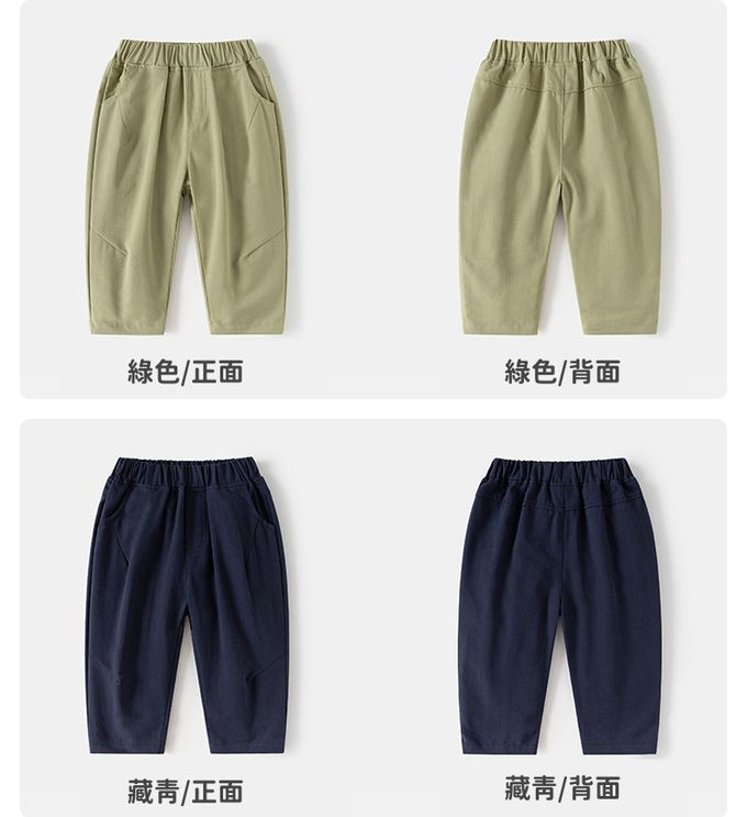純棉腰鬆緊休閒長褲-壓褶設計-綠色