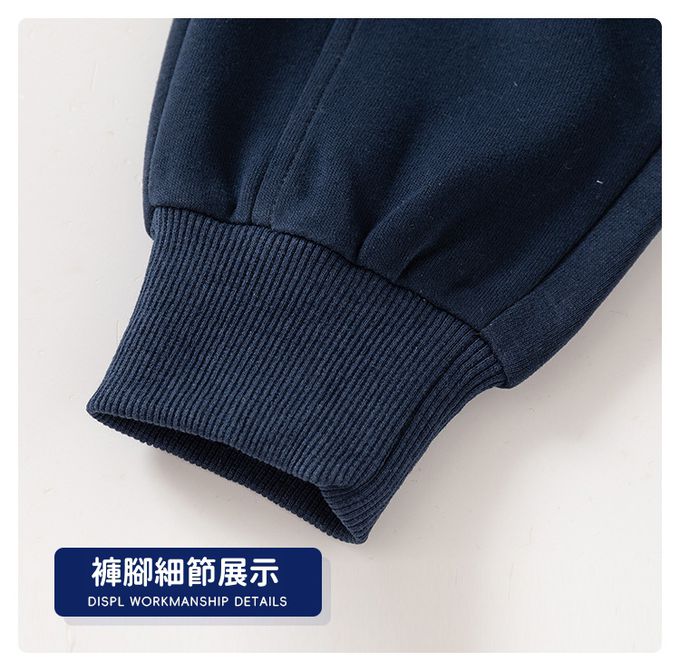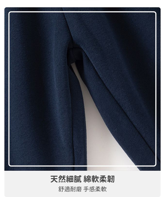 腰鬆緊束口休閒長褲-線條熊熊-藏青