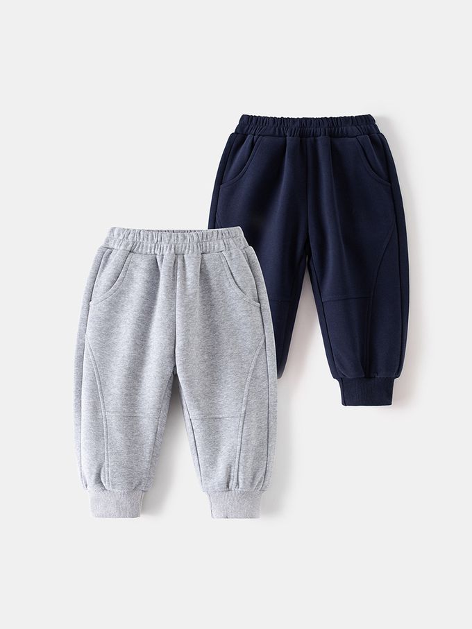 WELLKIDS - 腰鬆緊束口休閒長褲-幾何拼接-深灰