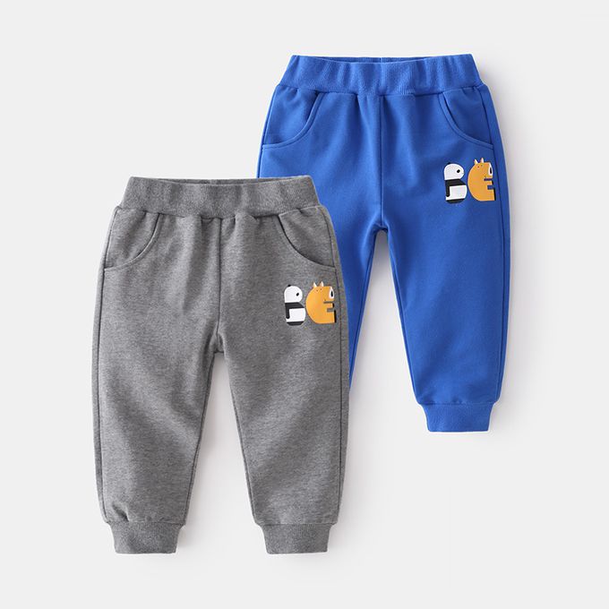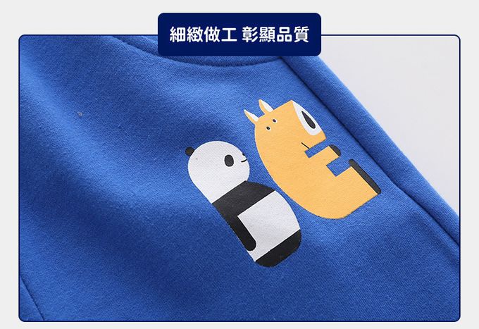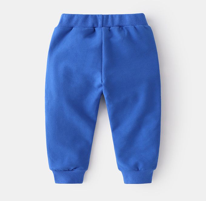 腰鬆緊束口休閒長褲-萌趣動物-藍色
