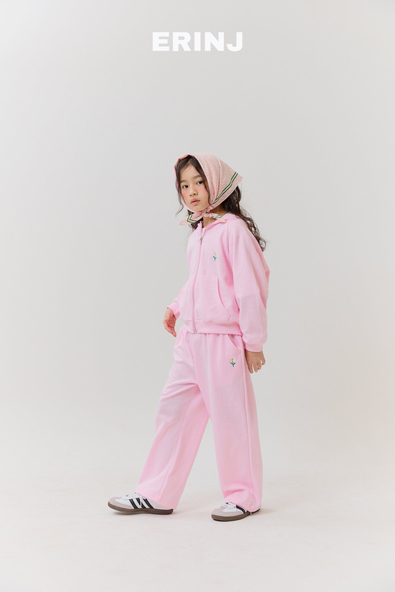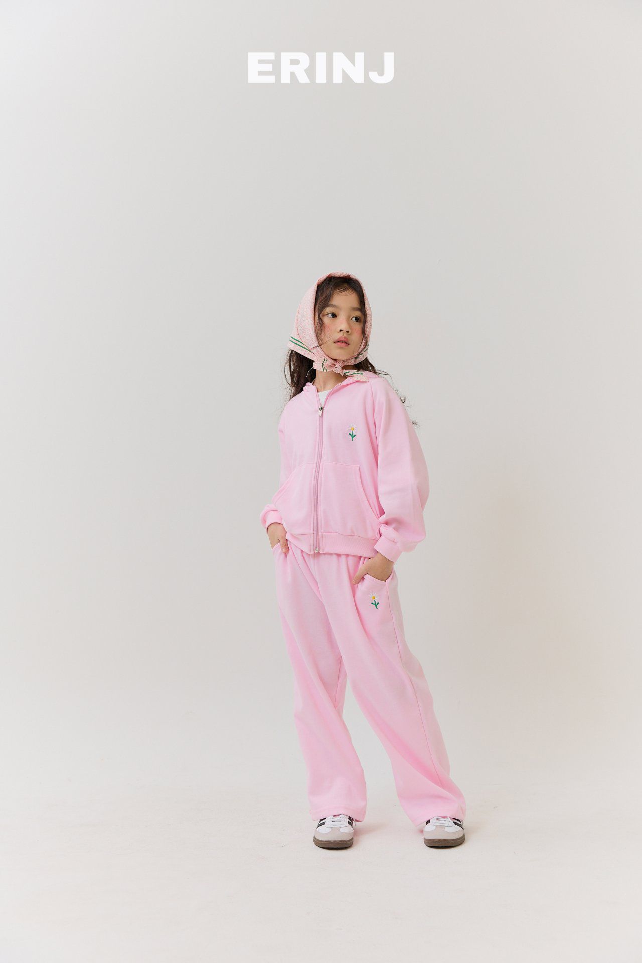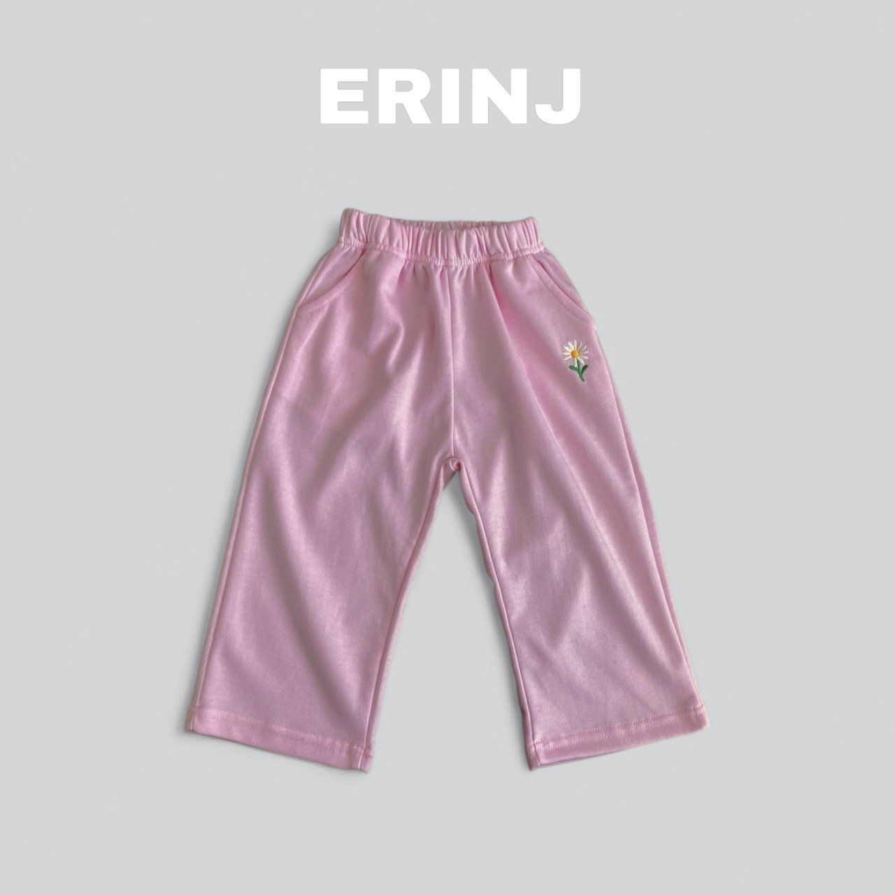 韓國 ERINJ - 鬆緊腰刺繡雛菊休閒長褲-粉