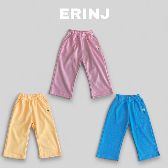 韓國 ERINJ - 鬆緊腰刺繡雛菊休閒長褲