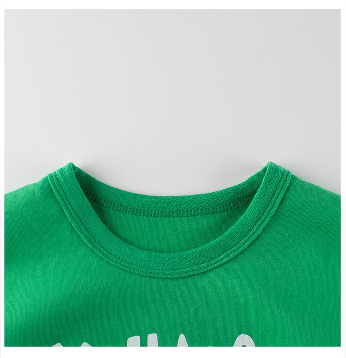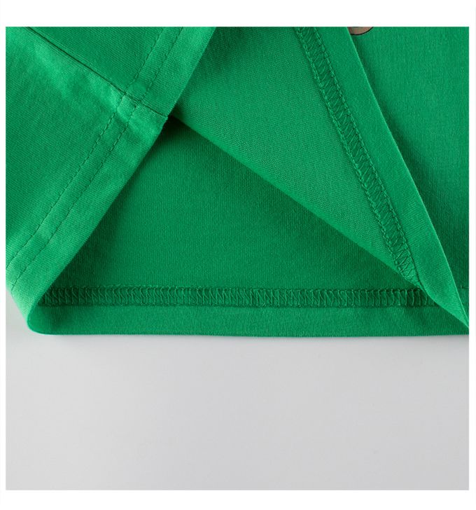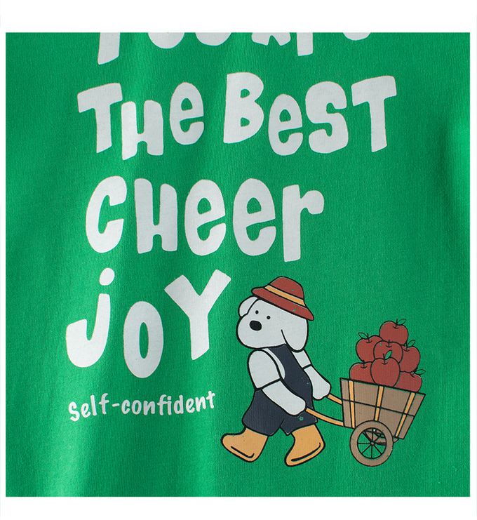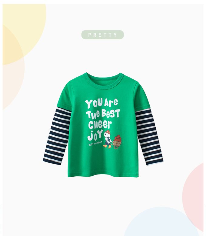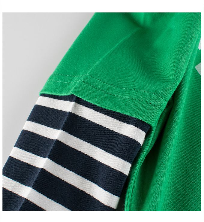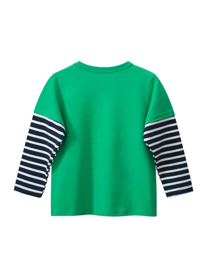 棉質假兩件長袖上衣-條紋拼袖蘋果狗狗-綠色