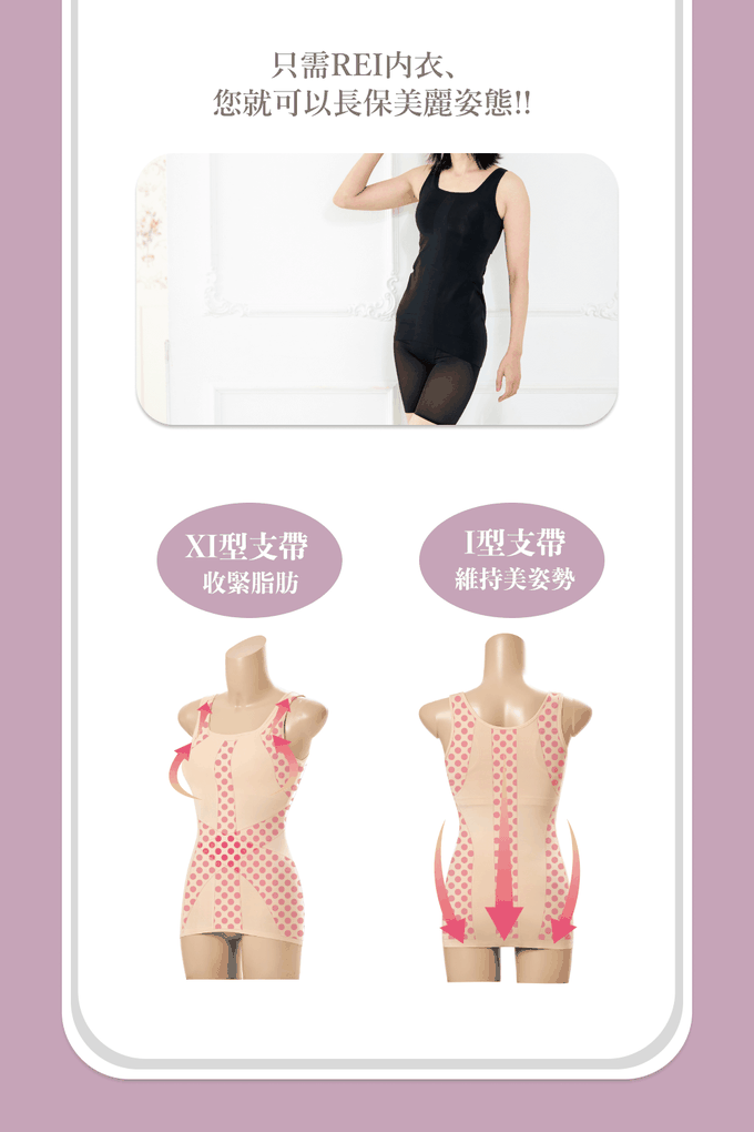 • 前側XI型支帶,收緊小腹脂肪