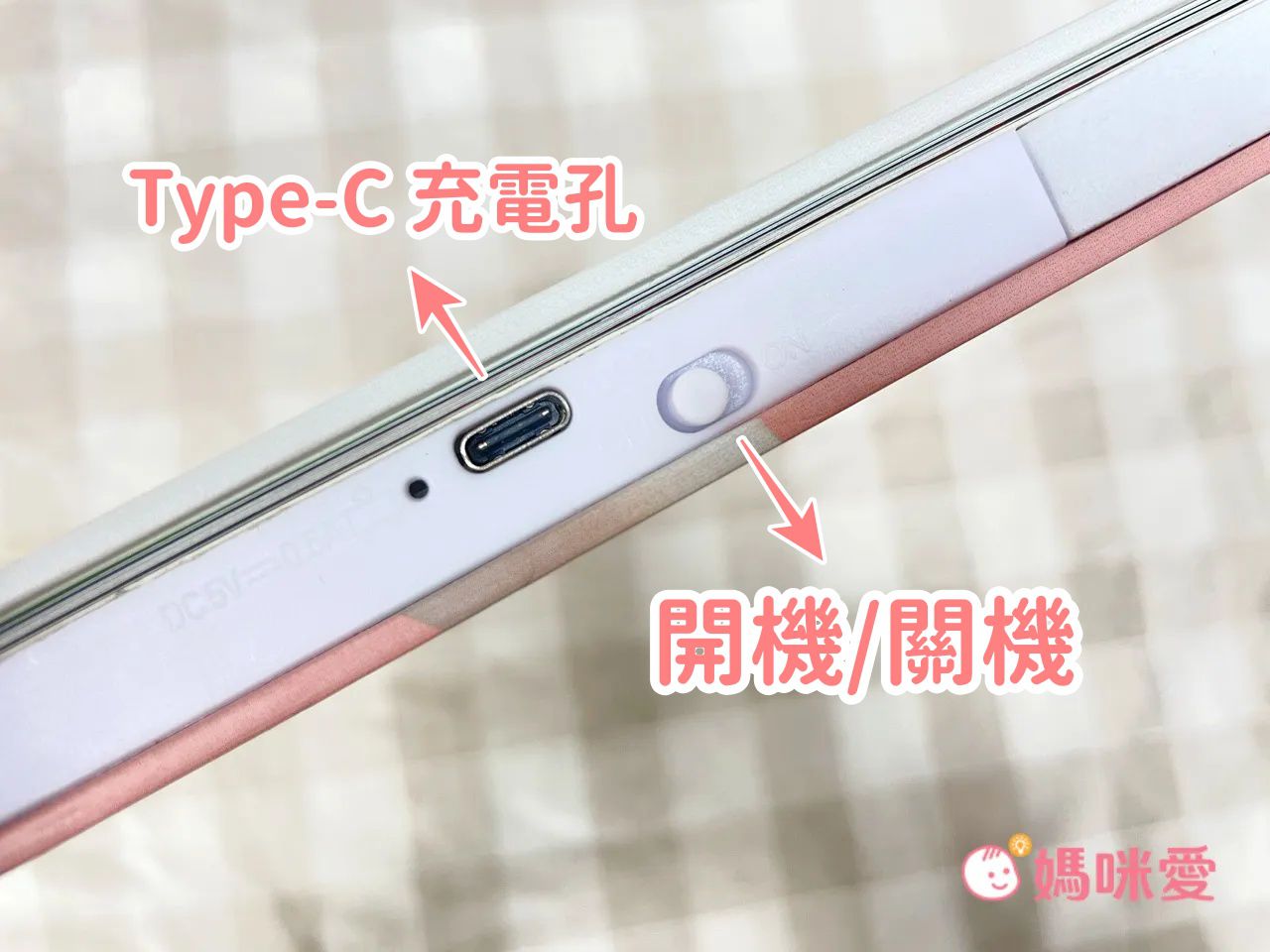 在閱讀前,先將書本側邊的開關打開,使用完畢後就調整為OFF,這樣才能省電🪫想充電時就使用USB TYPE C充電線(請自行購入)進行充電(請勿使用快充電源充電)。